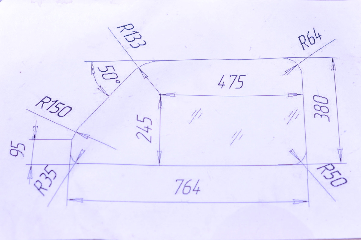 Поскольку со сваркой не стал связываться, решил сделать еще одно полезное дело, а именно шаблон стекла дверей под электро-стеклоподъемники. В интернете ходит чертеж с размерами стекла с учетом убранных форточек, вот он:
