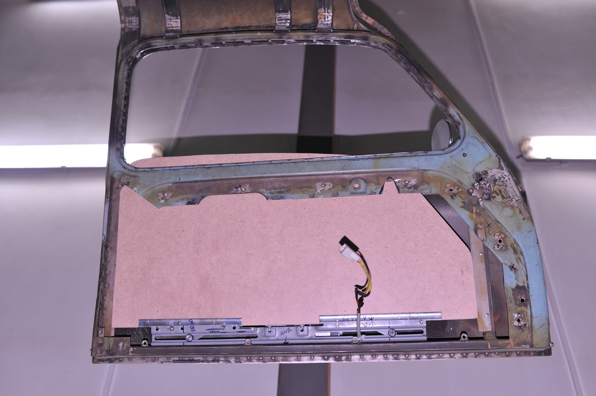 По периметру оставил зазоры в 4 мм, под резиновый уплотнитель, который уже приобрел. Пазы (вертикальные направляющие) в дверях подходят от «ВАЗ-2108», уплотнители по периметру стекла от «Оки». Видео снимать не стал, т.к. надо ставить направляющие резиновые уплотнители, но пока их время не пришло, поэтому 2 фото, когда заготовка внизу (окно открыто) и вверху (окно закрыто), поверьте на слово все работает!: