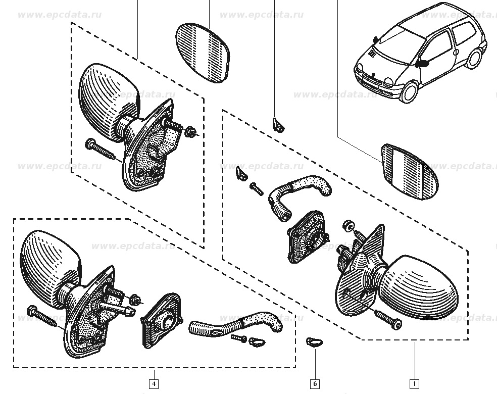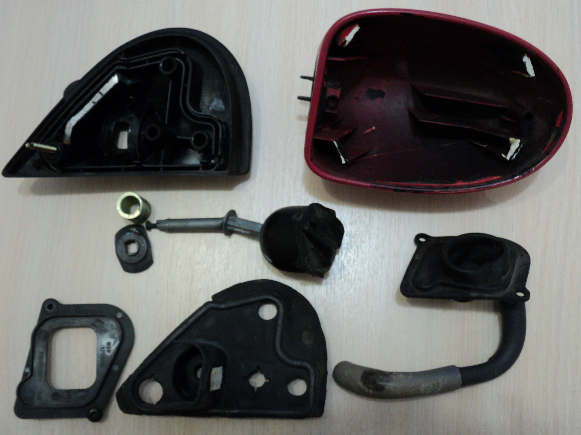 Нерегулируемое левое боковое зеркало было разобрано и после удаления из корпуса нескольких саморезов (результат поверхностного ремонта руками предыдущего владельца) возвращено к жизни.