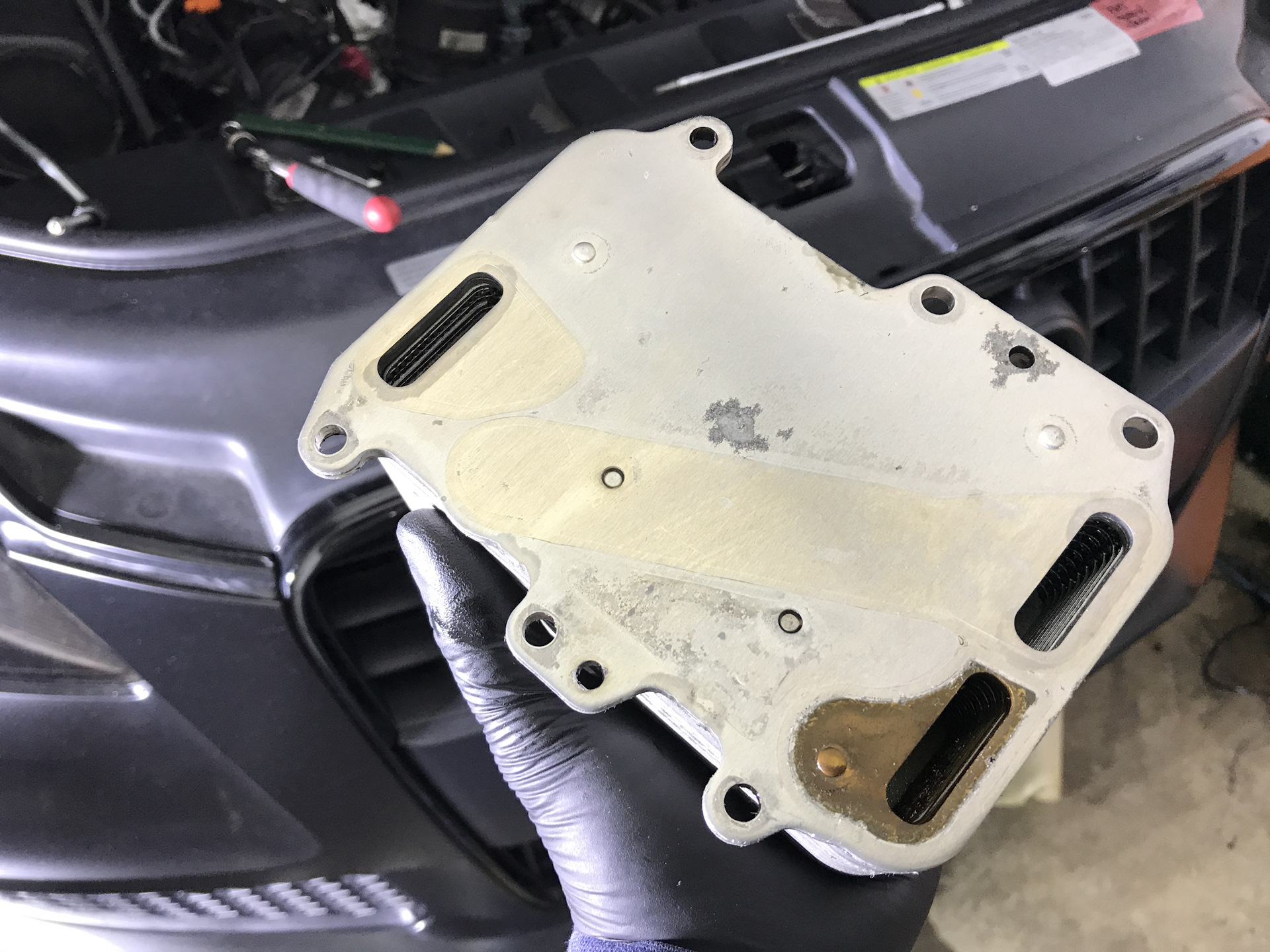 Это мой личный опыт! Я не знаю если есть ещё у кого-то эта проблема, я просто советую проверять. Я думаю без разницы если машина за бугром или нет мотор одинаковый. Чисто мое мнение по этой проблеме?! Мне кажется резиновая прокладка деформировалась из-за тепло обмена между алюминия и чугуна. Расширения метала происходит в разные тепловые нагревы чугунного блока и алюминиевого переходника для масленного охлаждения.