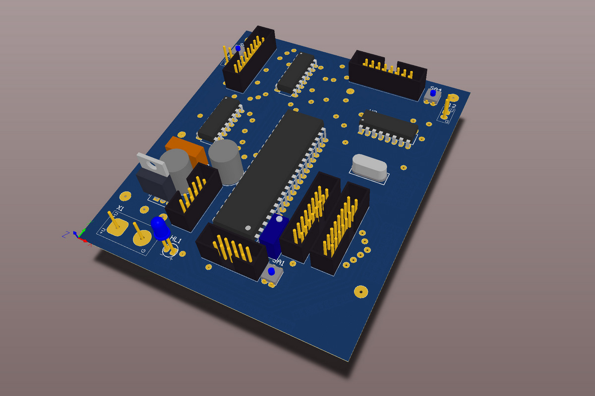По схеме делаю печатную плату, на фото ее 3D модель: