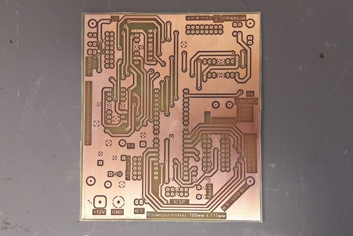 Следующий этап, делаю печатную плату 2-х стороннюю. Плата сделана по технологии «фоторезиста»: