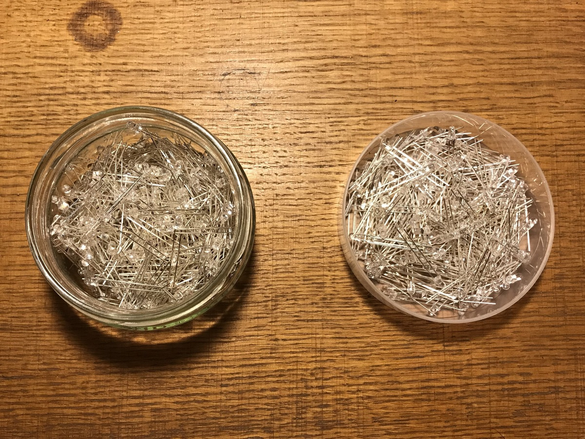 Вот такой запас сверх ярких светодиодов пришлось приобрести, здесь их 500 шт!, 300 – желтых, 200 –красных. Красные пойдут на стоп-сигнал. Эти же светодиоды использую для 2-х цветной подсветки тумблеров «бороды». Многие скажут: «ЗАЧЕМ?», можно было поставить по одному мощному LED-светодиоду! НО, ведь это слишком просто, не интересно и банально! Так что, только «аналоговый, ламповый» звук, точнее свет!