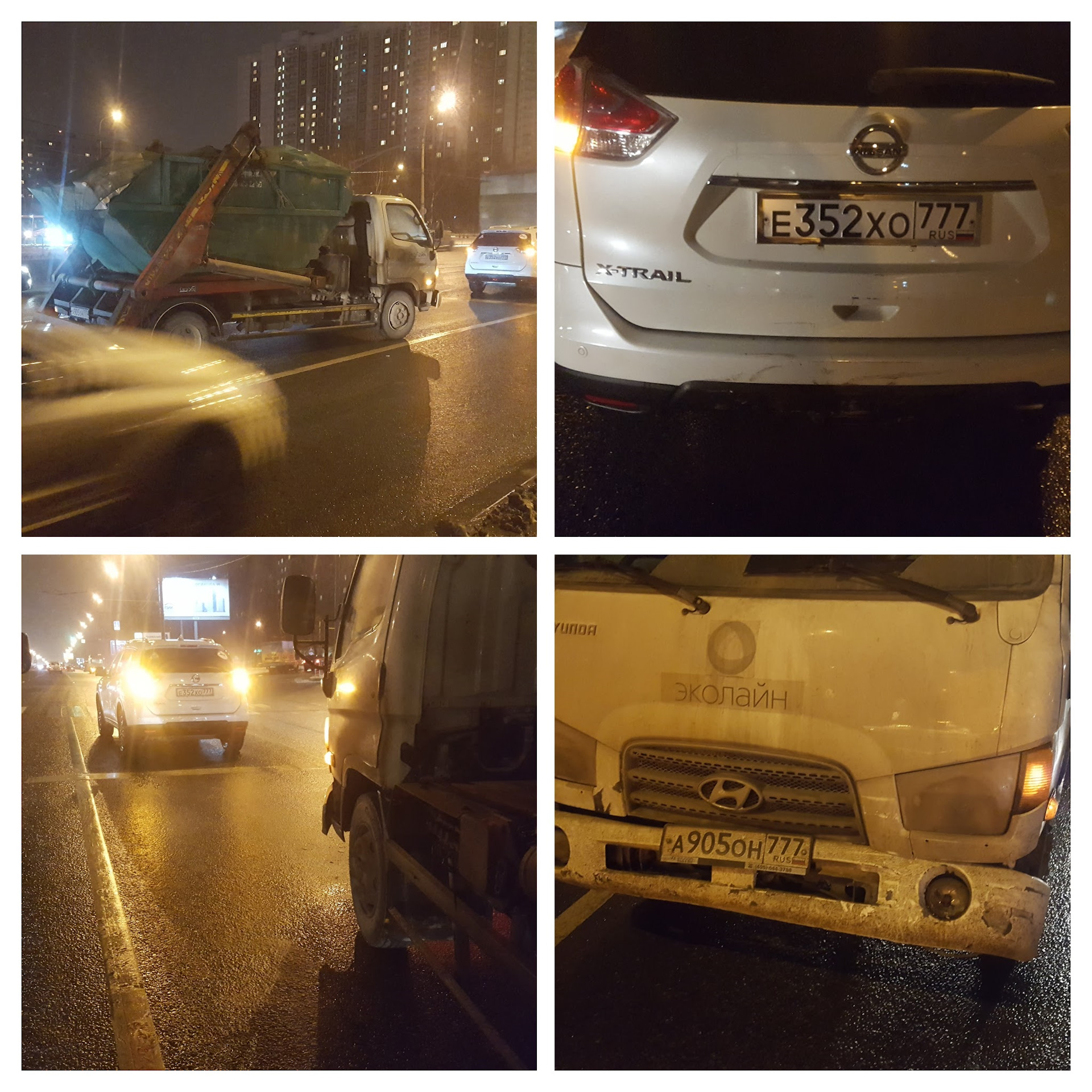 Кстати, удар был хороший, но корма у ниссана оказалась крепка