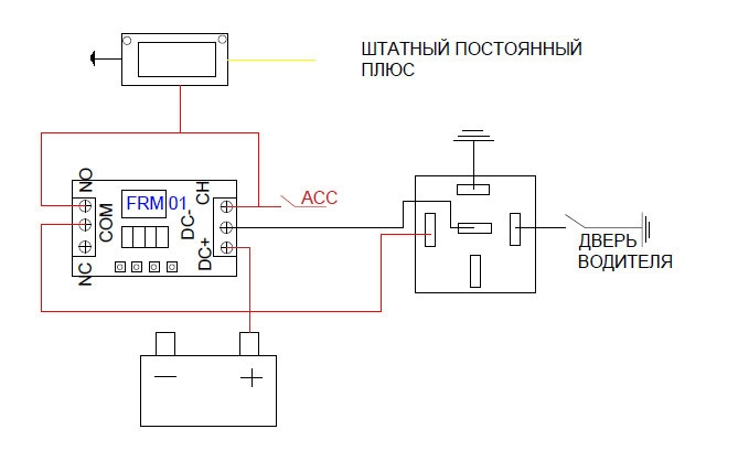 НО! минус уже снова есть на таймере. Потому что в любом положении обычного реле, через него всегда идет минус, за исключением момента факта открытия водительской двери. В этот момент происходит просто переключение с одного контакта реле на другой и этой сотой доли секунды достаточно чтобы прервать работу таймера