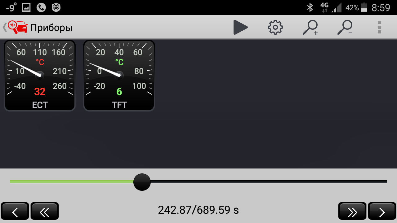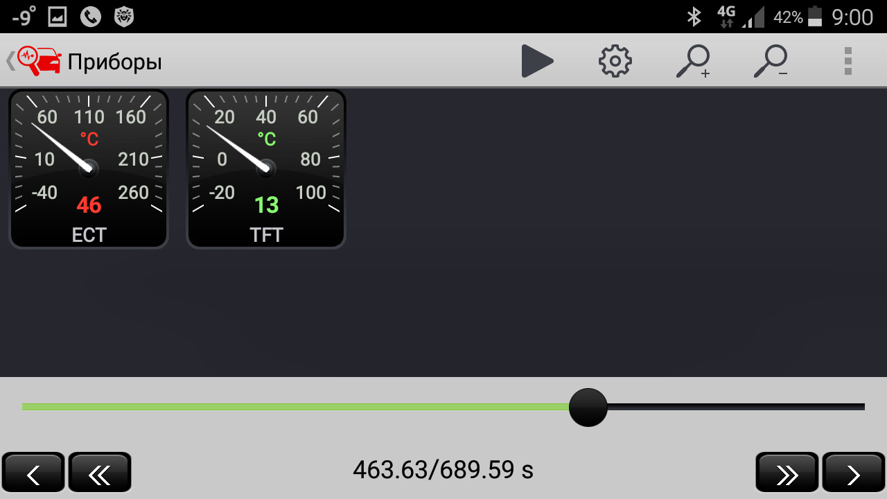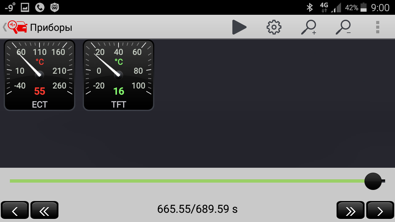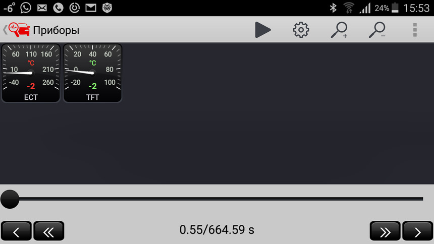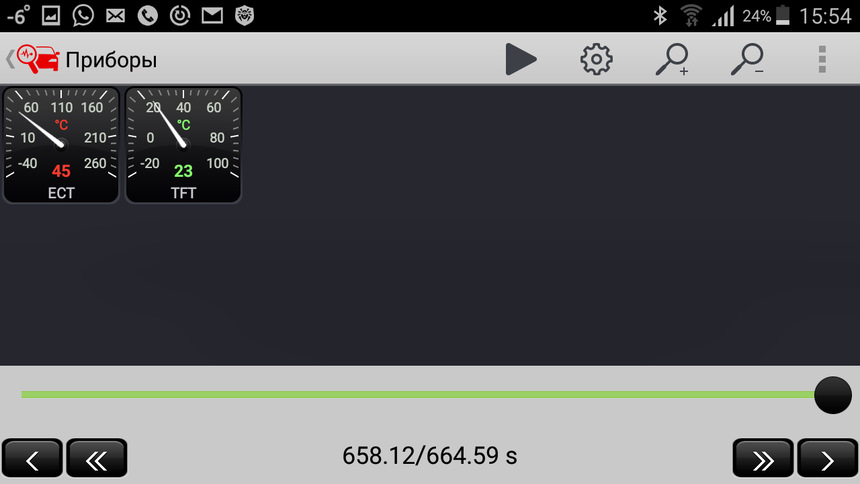 Получилось, что за 10 минут ДВС нагрелся до 45 градусов, а масло в коробке до 23. Печка была в ручном режиме — температура 25 и два деления вентилятор в режиме рециркуляции.