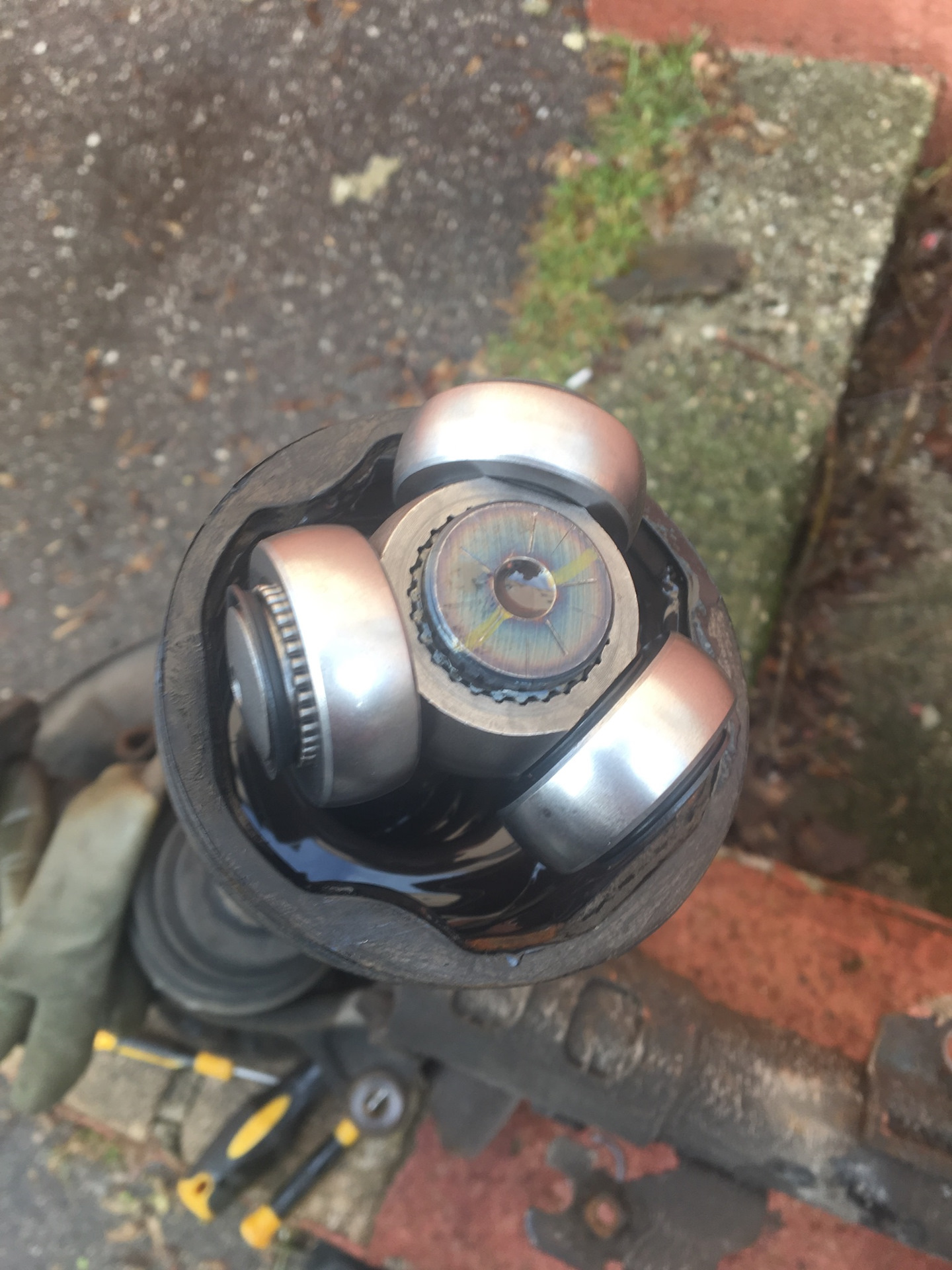 Далее сборка, забил смазки в стакан, намазал иголки роликов и собрал. Затем установка на место и заливка жидкости в трансмиссию. А далее тестовая поездка, проверил на скоростях до 160, почти нет вибрации, а почти это потому, что возможно другая сторона люфтит, но в рукопашную не проверить. Прокатился и необходимо проверить, нет ли течей, все ок.