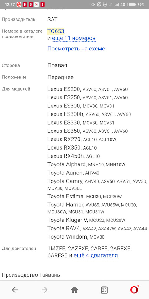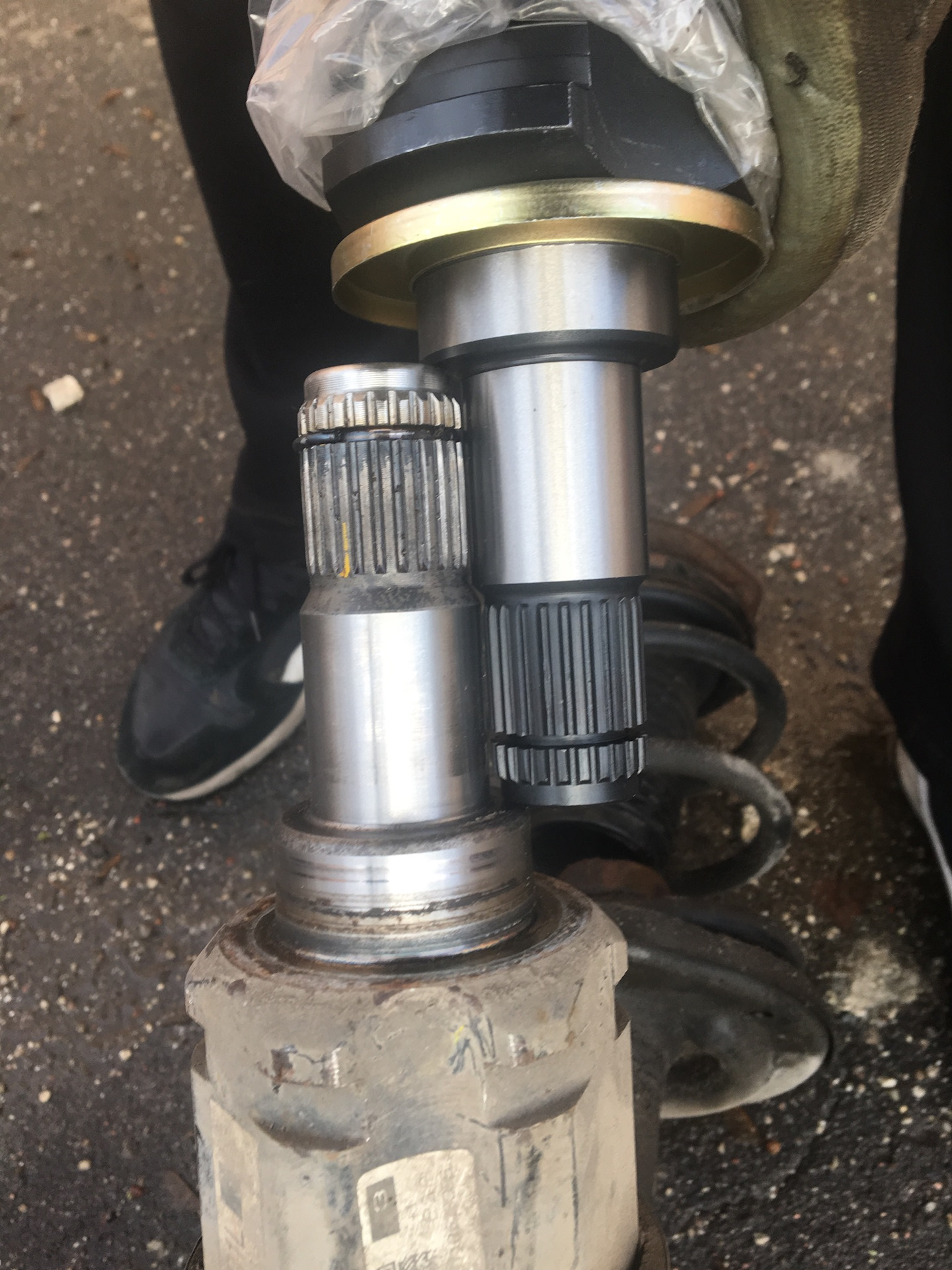 Сразу после покупки машины при езде не трассе заметил вибрацию, но скорости были 130+, спустя некоторое время появилась уже 120+, долго так было и здесь уже стало 110+, а на 140 так колбасило, шопипец! Я же сначала грешил на шины, заменил их, все осталось как было. Почитав форумы, начал подозревать внутренний ШРУС, но не знал, левый или правый. А вот при переобувке на зиму, пока машина висела без колёс, решил проверить на наличие люфтов в шарнирах, которых быть не должно почти. Справа норм, а вот слева прям хорошо так люфтило. Начал поиски вариантов решения проблем, в оригинале только привод в сборе:( да и цена коцмос:((( А здесь мне автотрейд вспомнился со своими кроссами в каталоге, где и нашёл вариант от ипсума-20 с мотором 2.4. Китай от него 1800р, а оригинал 13000р. Конечно брать оригинал за такие бабки и, не зная, подойдёт ли вообще — глупо, слишком высока цена ошибки. Заказал Китай, привезли, смотрю смазку, фигня какая-то, потому что я уже знал что во внутренний ШРУС нужна жидкая.