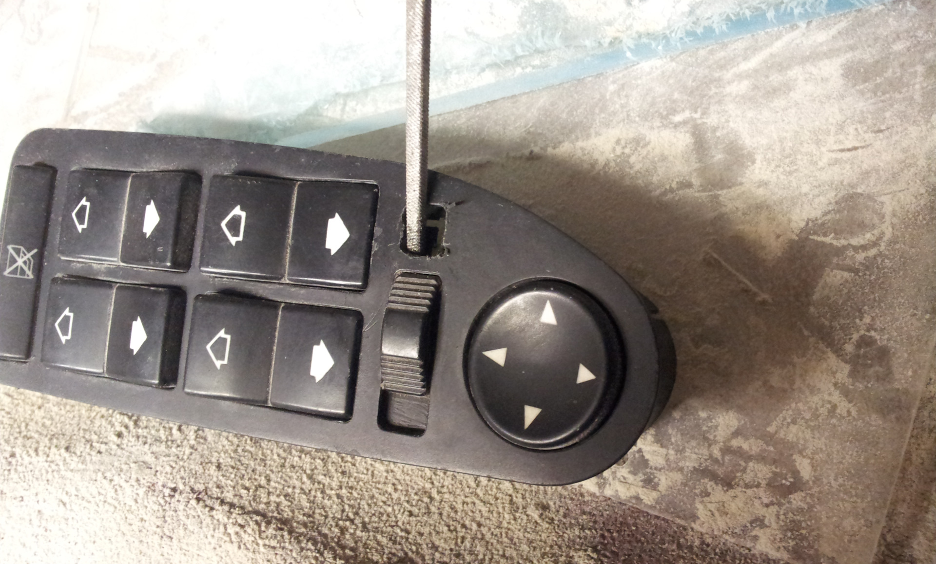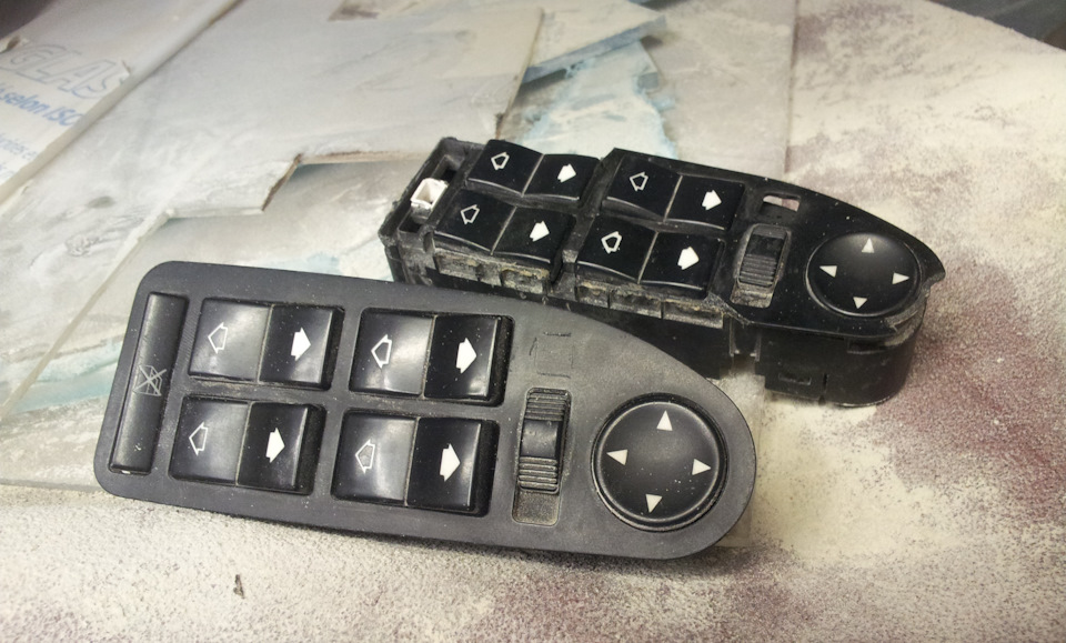 Мой блок без кнопки и ЭТОТ с кнопкой, но варварски извлечённый из дверной накладки, да ещё и без кнопки блокировки задних стеклоподъёмников.
