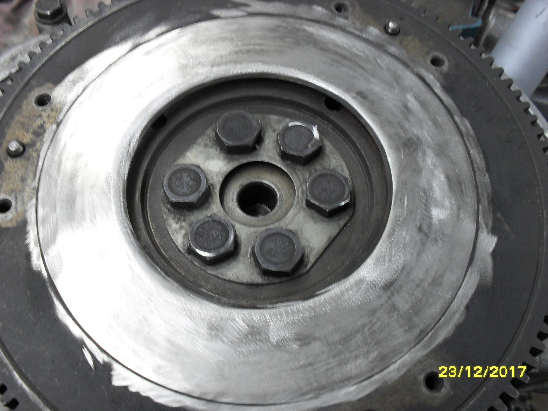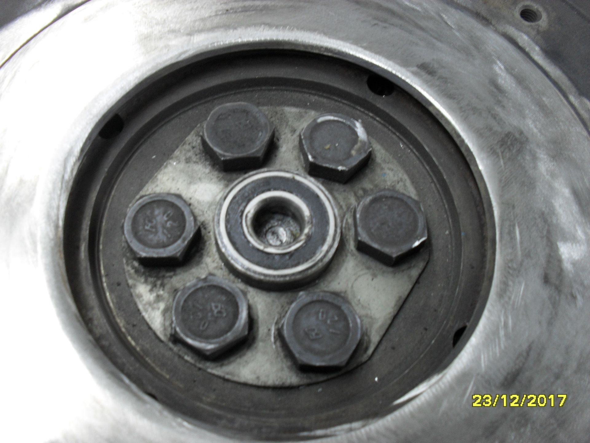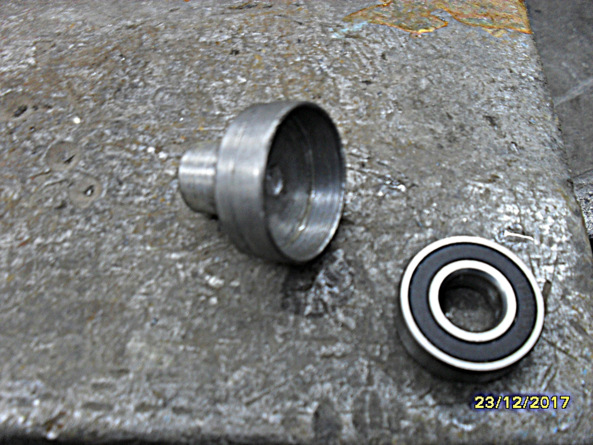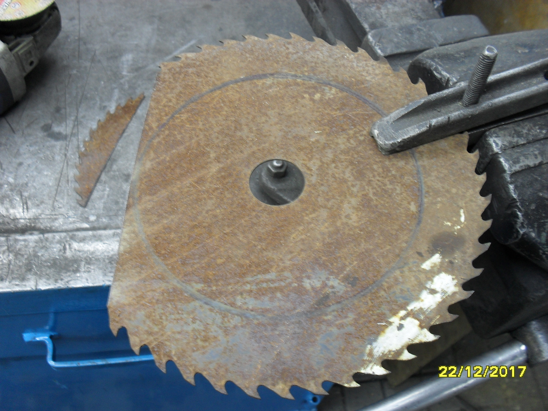 На родном Оковском моторе сцепление честно говоря не очень надежное. Да и первичный вал КПП какой-то игрушечный. В общем решил немного по мощнее сделать первичный вал и самодельный диск. Сначала хотел переделать из Оковского диска. Сделать так сказать родной диск с более мощными шлицами. Но при тщательном осмотре выяснил, что так сделать не получится. Решил делать самодельный диск. С пружинами ( демпфером) мудрить не стал. Скорость у трактора маленькая. Так, что должен и без пружин работать. При желании всегда можно если, что и с пружинами сделать. Для самого диска использовал циркулярную пилу времен СССР. Она тонкая и каленая ( ни то, что сейчас продают). В качестве накладок (феридо) использовал накладки от трактора ДТ-75. Не знаю где они стоят. Но в магазине продаются. Цена копеечная. Они правда немного толстоватые ( по сравнению с родными) Но ничего. На маховике и корзине была небольшая выработка и буртик по наружному диаметру. Это говорит о том, что новый диск сцепления от Оки может уже и не пойти. А тракторный в самый раз. Обточил эти буртики. По наружному диаметру тракторные накладки немного большеватые. На токарном станке обточил их. Отрезал от диска циркулярки лишнее. Потом зажал в патрон токарного станка и обточил по наружному диаметру. В качестве шлицевой втулки использовал внутреннюю часть от Жигулевского диска. И по просверленным отверстиям приклепал металлическими заклепками сердцевину. Накладки приклепал бронзовыми заклепками. На станке снова проверил биение. Немного обточил. Первичный вал тоже решил сделать из Жигулевского и Москвичовского. Отрезал от Москвичовского вала часть с подшипником . А от вазовского шлицевой конец. Скрестил их. Хотел уже было обваривать. Но потом пришла в голову мысль. А что если Москвичовский первичный вал использовать полностью? И варить ничего не нужно. В итоге на Москвичовском и остановился. Все заново. Выточил ступицу ( из Москвичовского диска сцепления). Наклепал ее на диск. Отрезал по размеру первичный вал. Теперь есть два варианта: С москвичовским первичным валиком и с Жигулевским. Для опоры первичного вала в коленвале Оковского двигателя пришлось выточить грибок. Запрессовал его в отверстие коленвала. И поставил в грибок шарикоподшипник. Теперь на очереди выжимной подшипник и вилка.