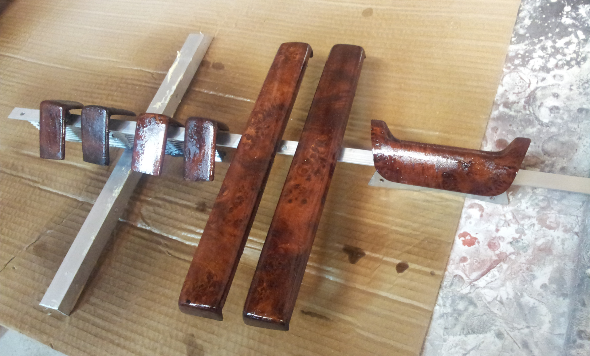 Ну и самому мне теперь сидеть некогда. Начал оклеивать недостающие детали комплекта шпоном.