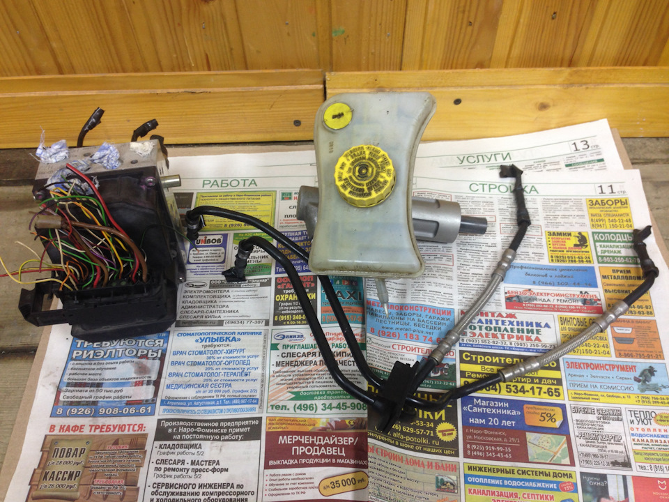 Дохренища времени ушло на распутывание заводской проводки АБС — ее все равно нужно было извлекать заменяя ЕСПшной. Чтобы не делать этого в спешке в день установки — решил по максимуму выпутать заранее. Задолбался основательно, так как она проложена глубоко, дофига хомутов которые не хотелось резать — расстегивал пассатижами. В ногах уже лежала подключенная к датчику рысканья, также проложенная под ковром и застегнутая в хомуты.
