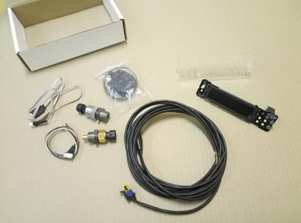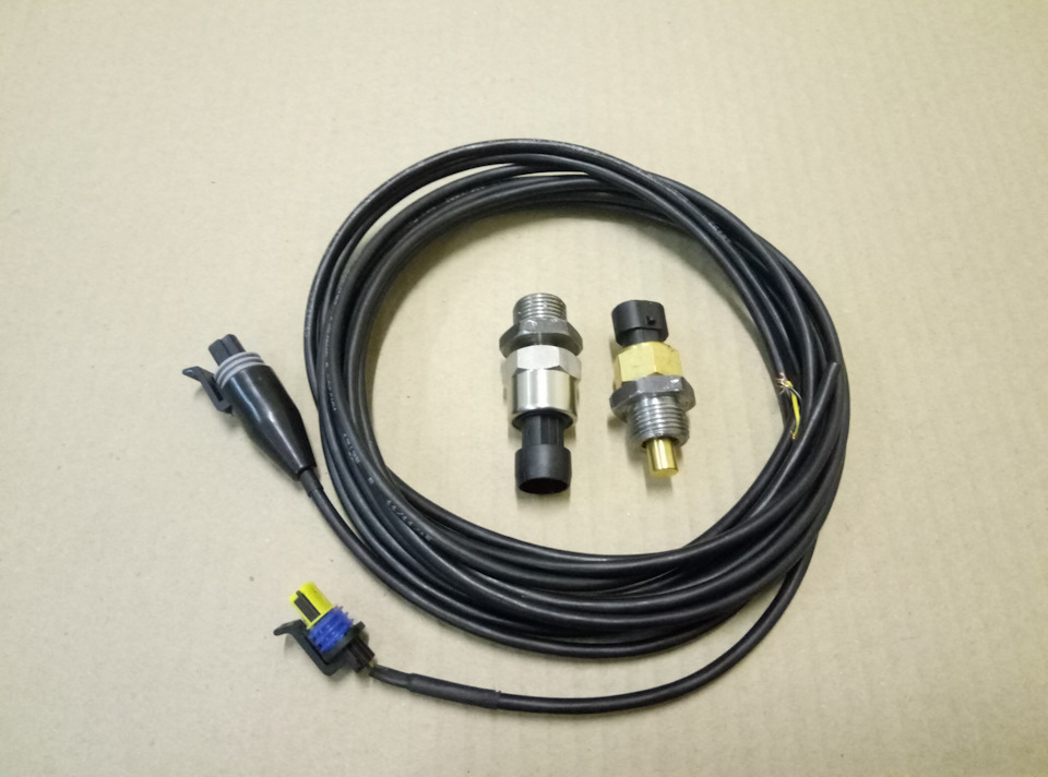 Датчик давления, с переходником, датчик температуры с переходником и комплекты кабелей: