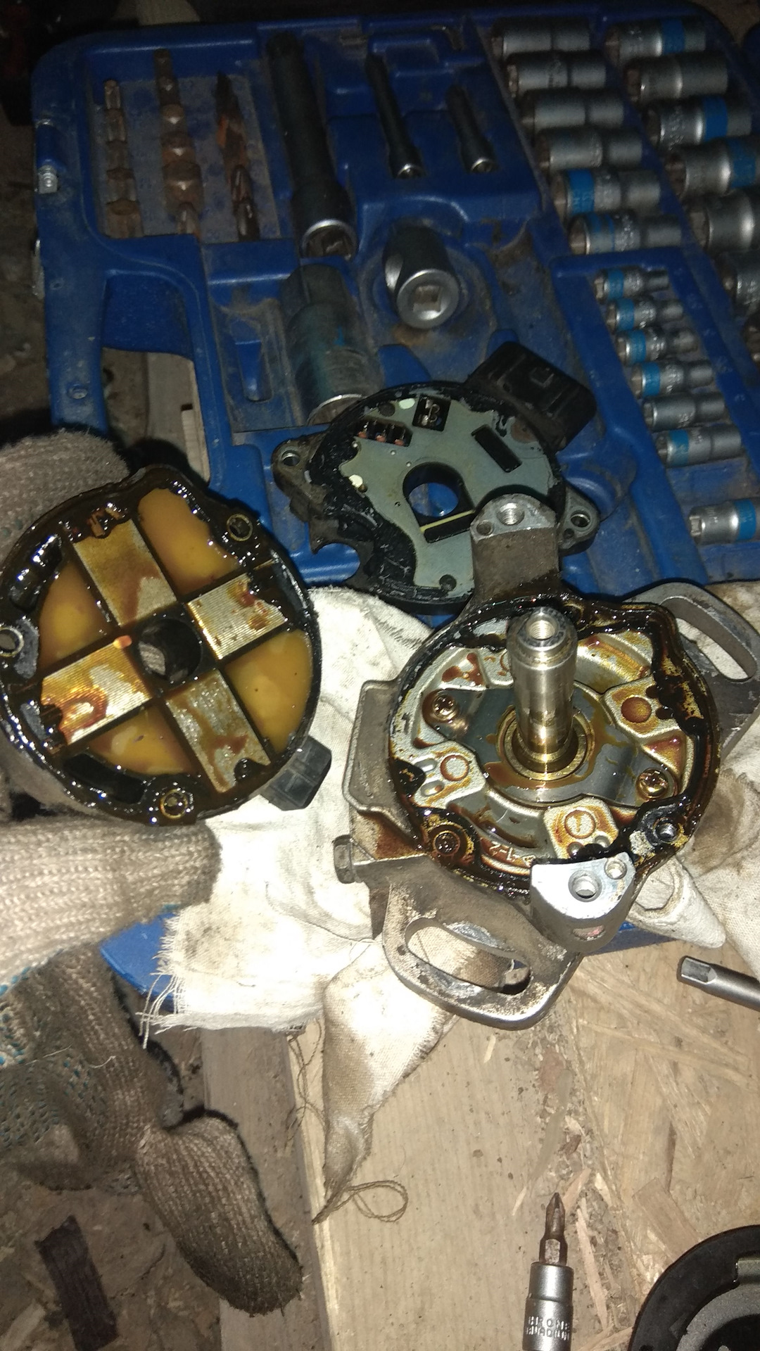 Привет, сейчас тоже мучаюсь перебрал трамблёр а шторки не запомнил как стоят. После того как собрал завёл всё нармуль а потом видать прогрелась и началось… Обороты начали плавать на холостых с 300- 800. Сегодня попробую твою схему сборки надеюсь поможет)) и ещё есть какая разница как бегунок ставить, вверх лепистками или вниз ?