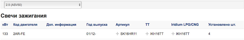 Электронный каталог Denso говорит о том, что на Камри 2.5 нужен артикул IKH16TT, а не IK16TT. Просто сегодня задался этим вопросом и обнаружил
