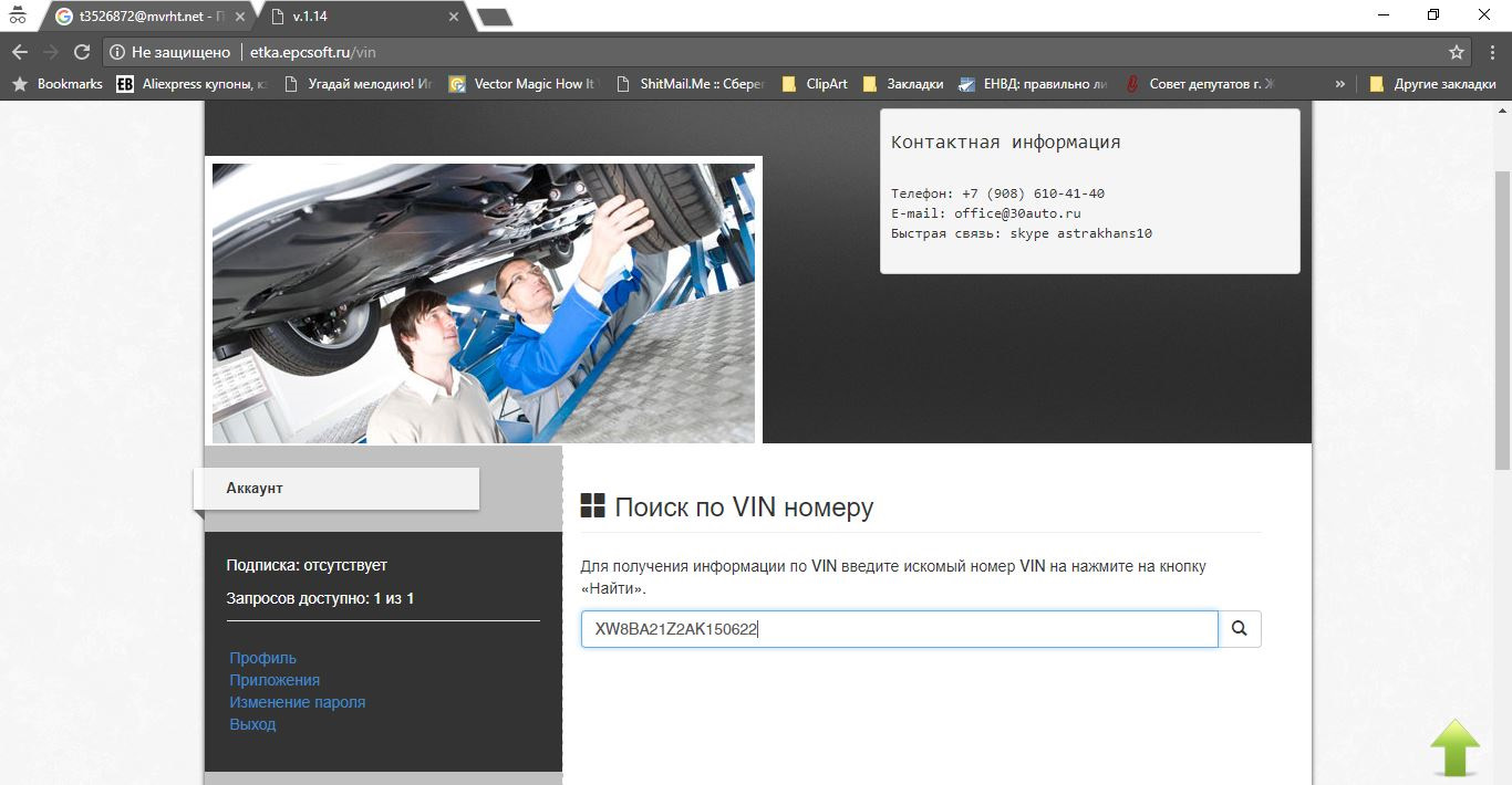 3 После регистрации, мы имеем возможность сделать один запрос. Что собственно и делаем. Нажимаем "Поиск по VIN":