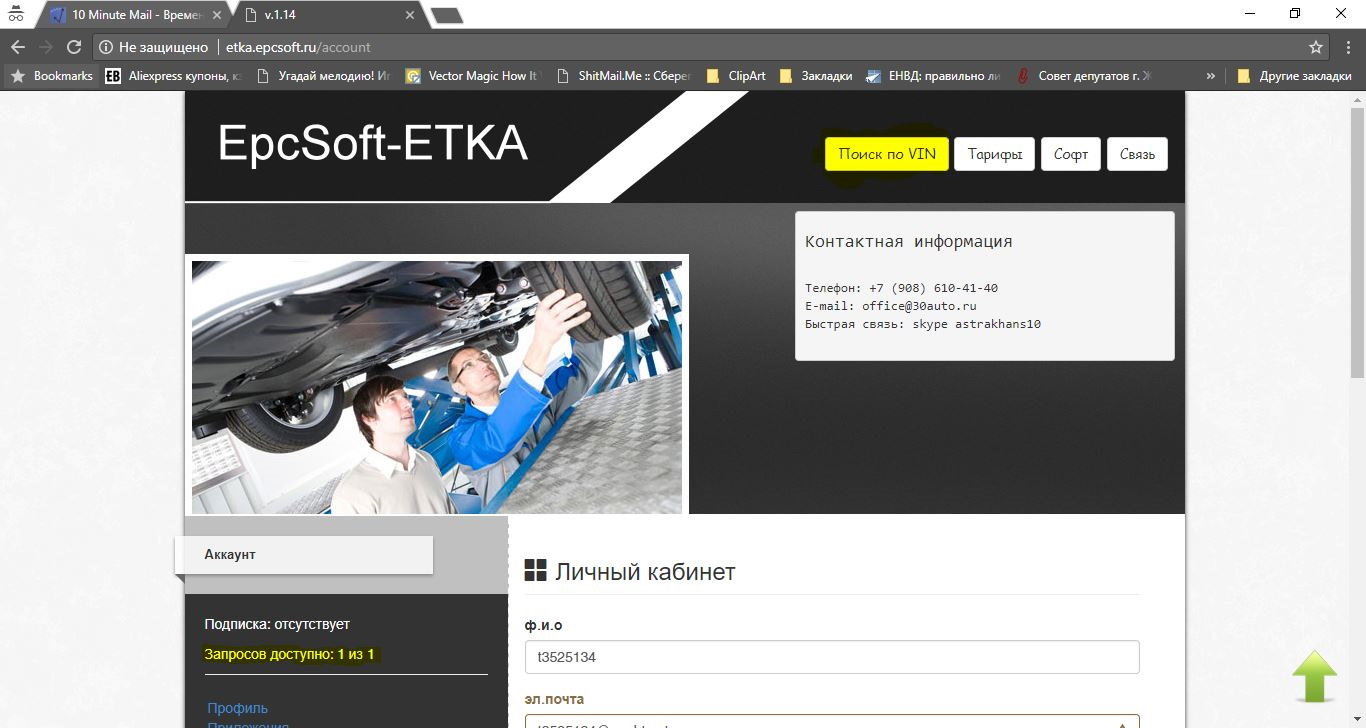 2 Переходим по адресу: etka.epcsoft.ru/ и регистрируемся с нашим новым почтовым ящиком и вымышленным номером телефона: