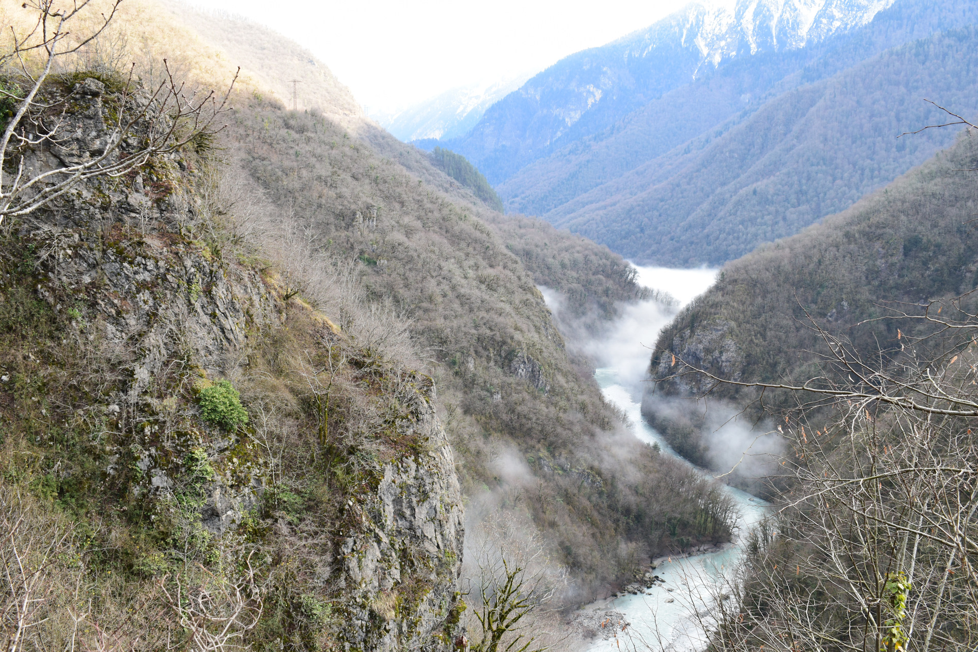 Начали спуск вниз, спустились до самой реки