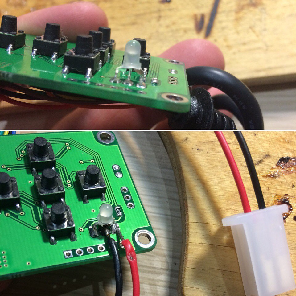 Добрый день. Пришел комплект, вопрос: как соединяется светодиод из приборки с КК, напрямую проводом или в фишке приборки есть свободные контакты?