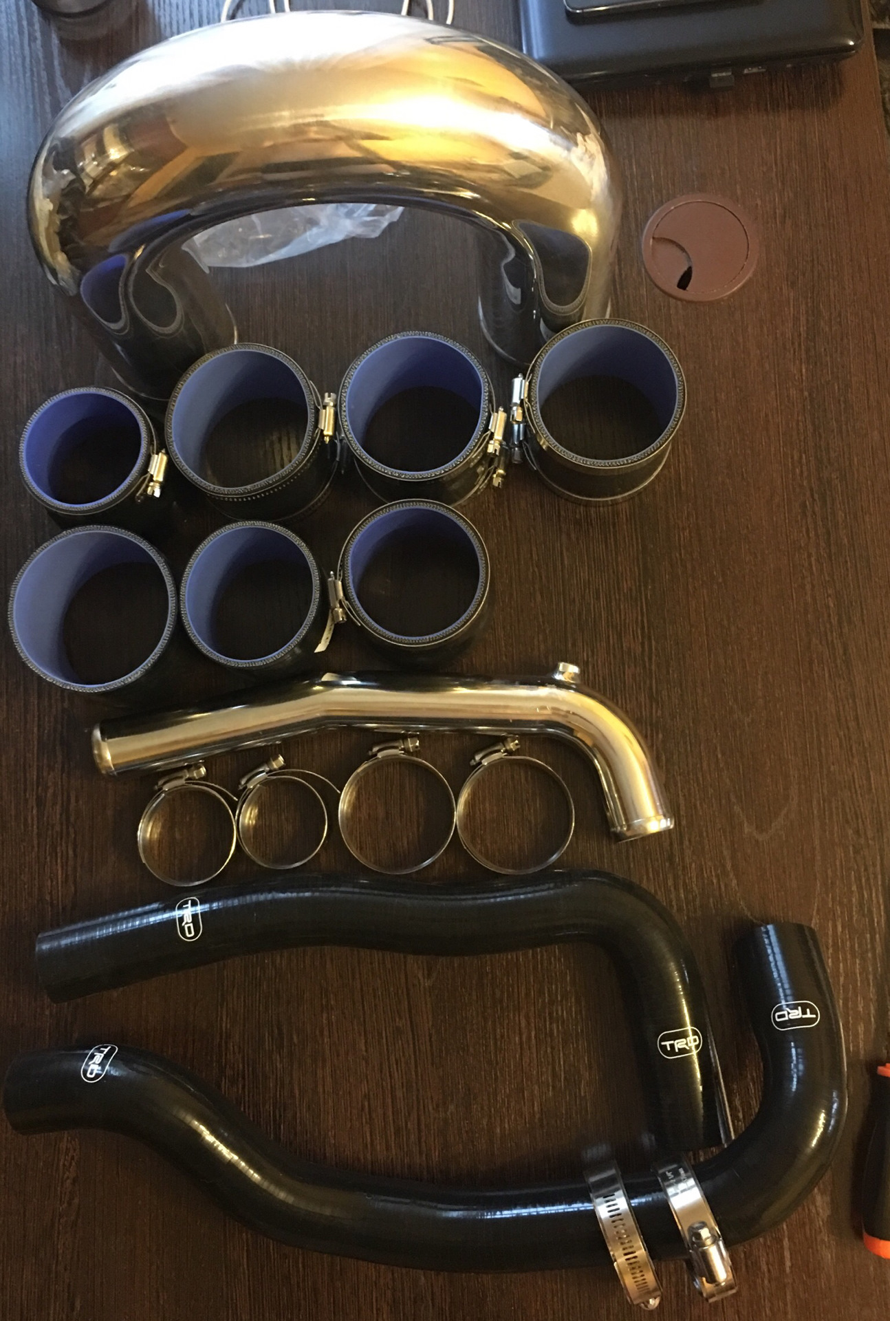 Весь силикон решил сменить на черный и убрать 90градусные силиконовые пайпы и поставить металл сварив два алюминиевых т.к синий не вписывается в общую картину, купить сразу черный меня остановил набор патрубков на мотор от AJS(нет этого комплекта патрубков в черном цвете) и тогда я купил остальные тоже синие)))) так же решил ещё заменить патрубки на радиатор и верхний поставить металлический. Так же под раздачу попали силовые хомуты, слишком громоздко они выглядят и Роман(Wetrbla) заставил поменять😂😂😂