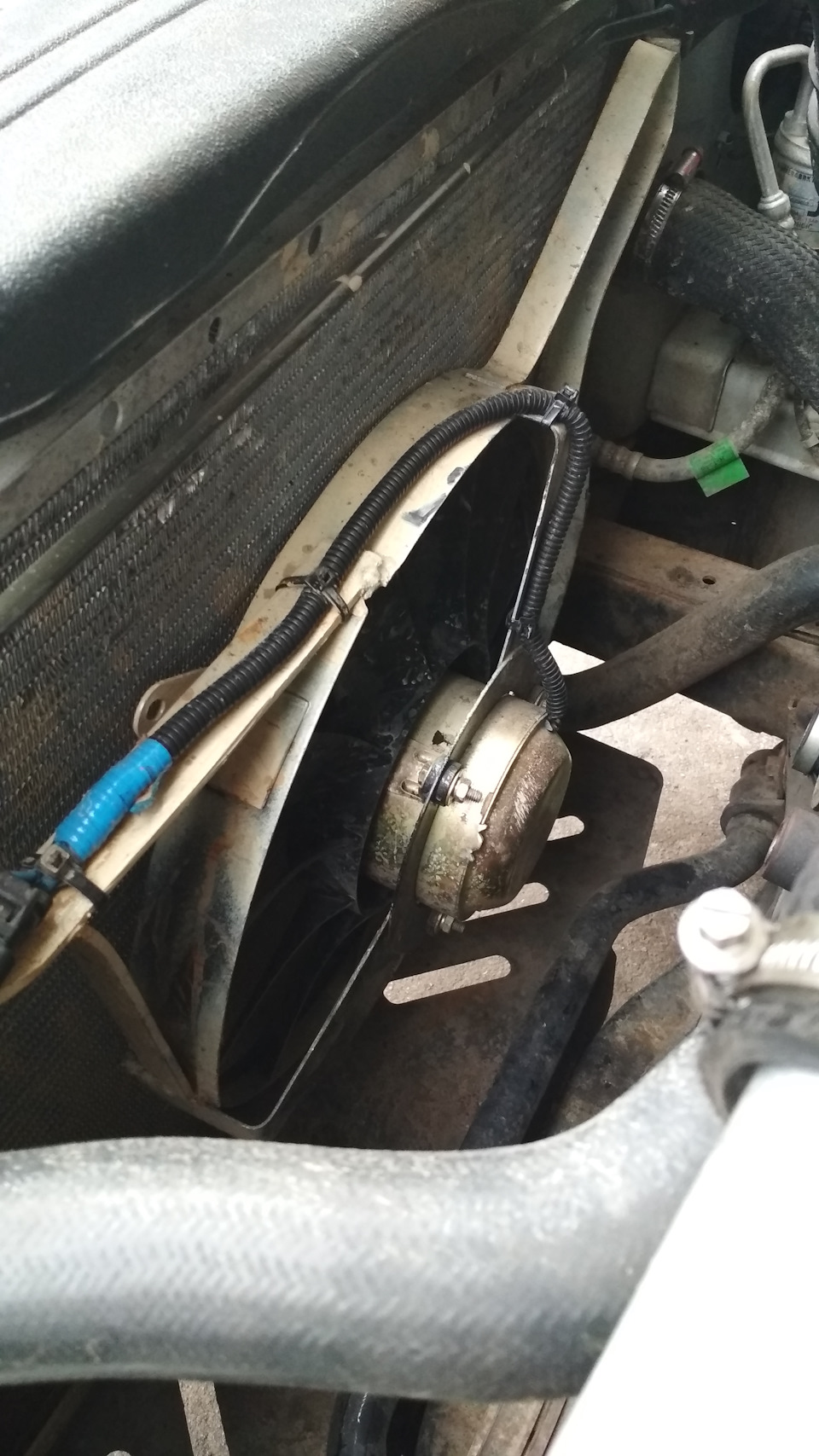 Процесс установки эл.вентилятора я не фотографировал, но могу сказать, что ни чего сложного там нет, особенно если есть яма или эстакада, сварка и запас по времени. На радиаторе имеется достаточно закладных гаек, куда можно прикрутить подогнанный по месту кожух вентилятора.