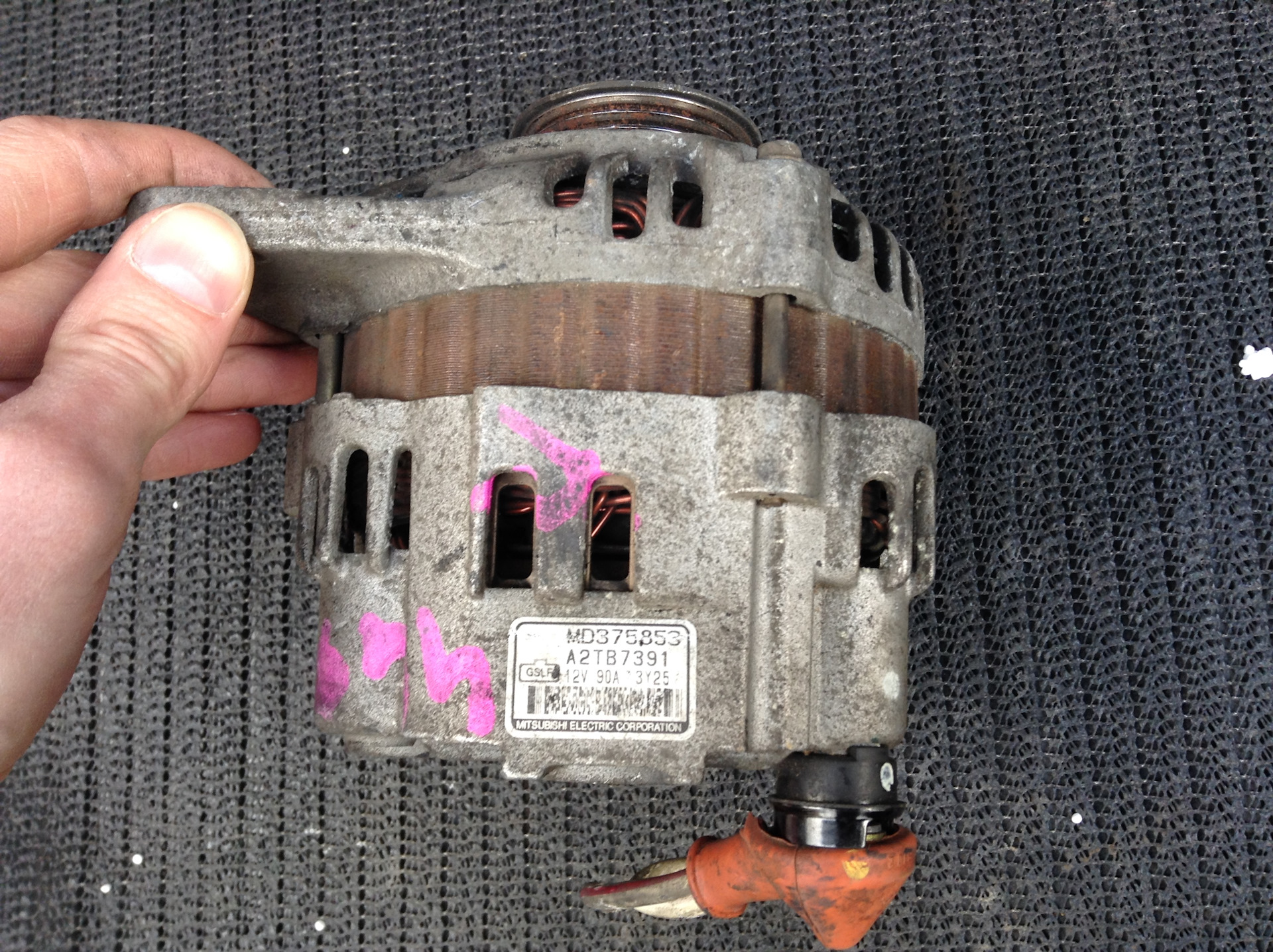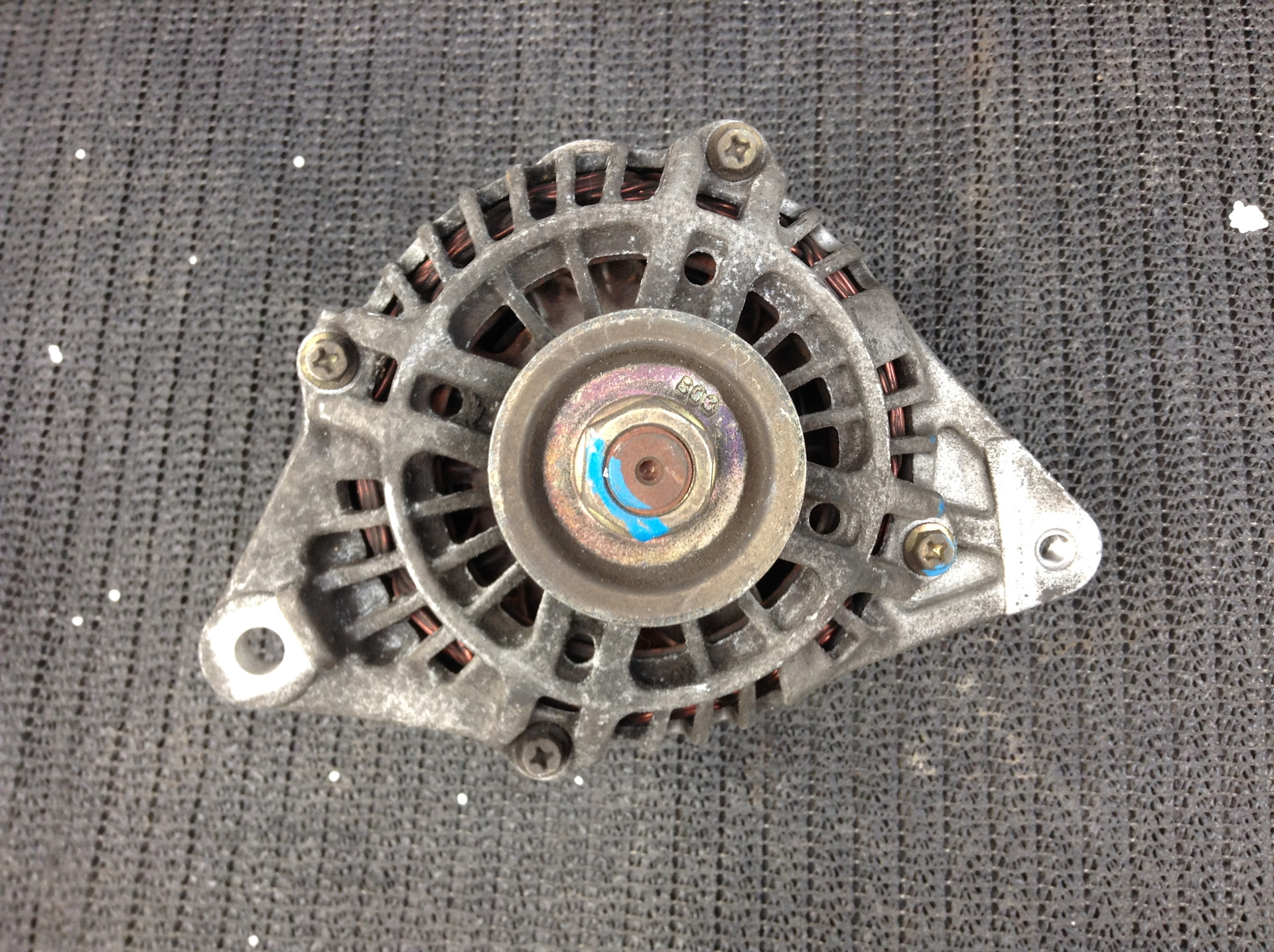 Всем привет! Сегодня забрал генератор из транспортной и сразу же помчался к электрику на замену. Старый совсем устал и недавнее ТО генератора это не на долго. Опять появился непонятный скрежет так как один из подшипников не удалось поменять. Заказал здесь у ребят контрактный, дали 2 недели на проверку. Шкив немного отличается от нашего, немного меньше по диаметру и уже по толщине (фото увы не сделал). При замене поставили свой шкив и соединили два провода которые пришлось обрезать при установки на старый генератор китайского реле-регулятора.