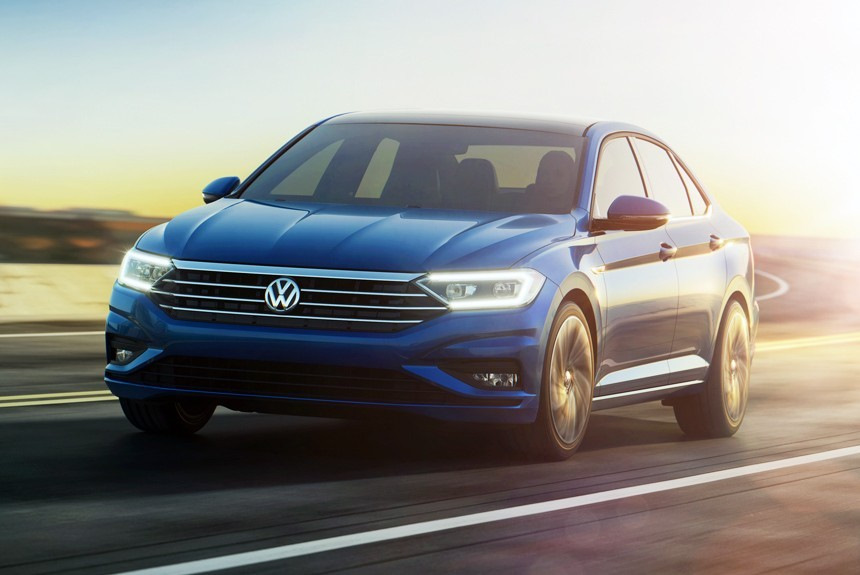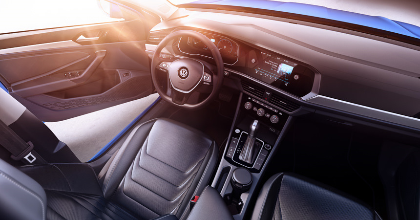 Уже в базовой комплектации новая Jetta имеет светодиодные фары, а начиная со второго уровня оснащения появляются системы автоматического торможения и контроля слепых зон. За доплату — электроника, следящая за дорожной разметкой, и адаптивный круиз-контроль. А вот разнообразия силовых агрегатов пока не будет: в Детройте Jetta дебютировала с единственным турбомотором 1.4 TSI (150 л.с.), который сочетается с шестиступенчатой «механикой» или традиционным восьмиступенчатым «автоматом». DSG американцам пока не предложат, хотя позже выйдет «подогретая» версия с двигателем 2.0 TSI.