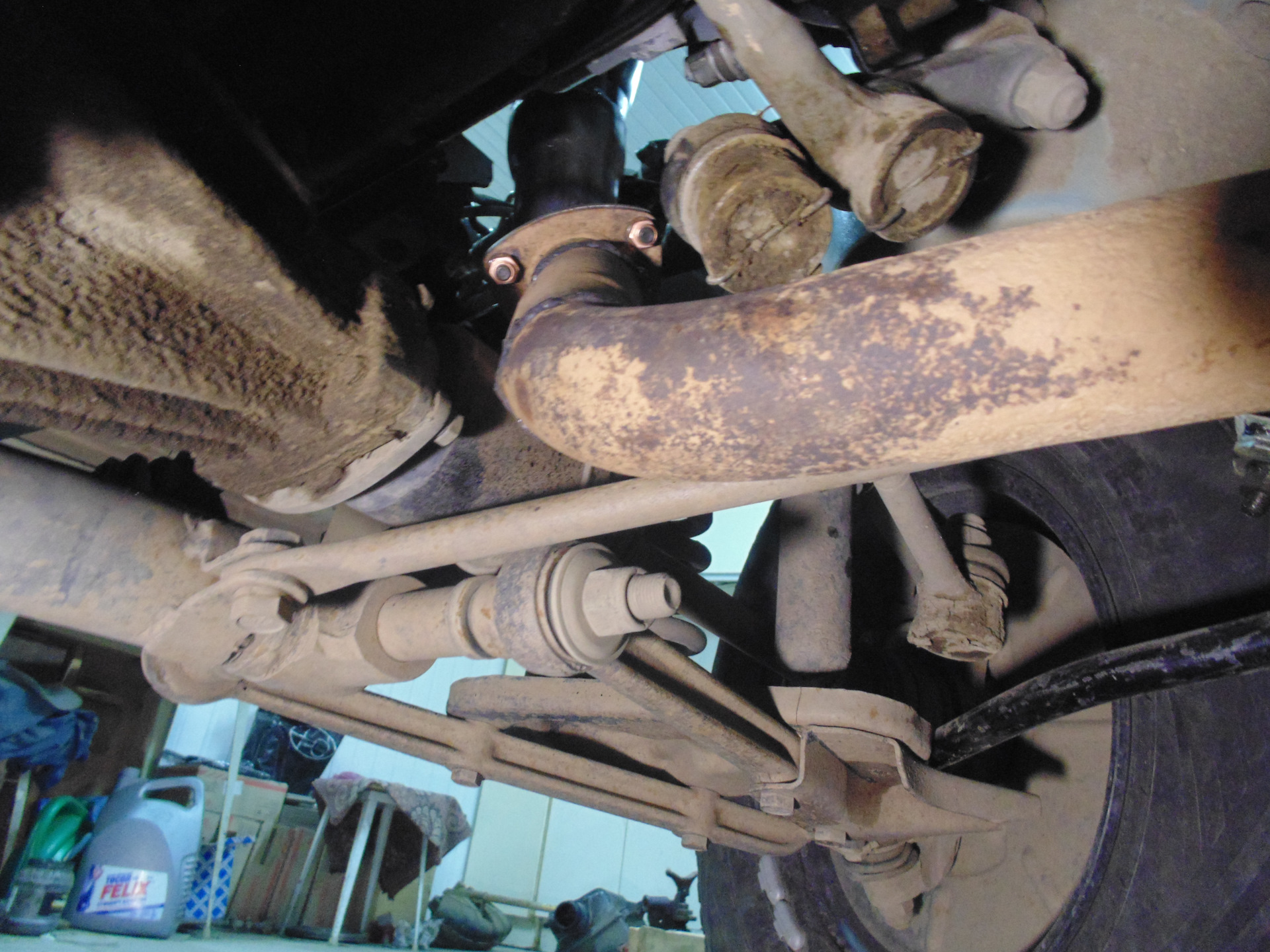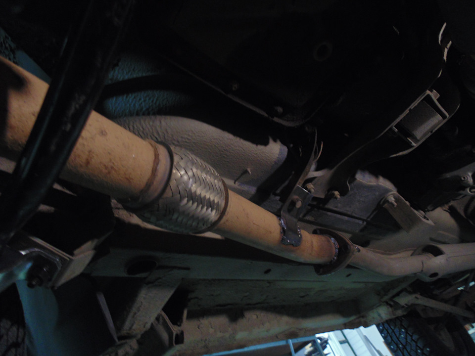 А после кпп выхлоп буду переделывать и гофра там тоже не помешает. От мотора сейчас идёт труба 51 мм, далее остался стандартный нивский выпускной тракт, вот его и надо будет привести в соответствие. Пока так поезжу, уже нет ни денег ни времени на всё это((