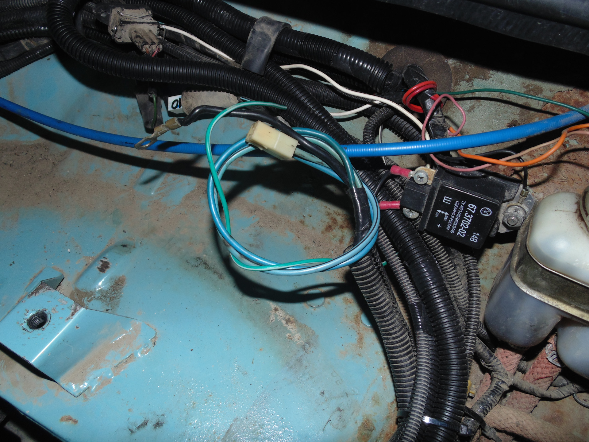 Провода идущие к вентиляторам и управляющий минус от ЭБУ. Тоже пока не сделано окончательно, поскольку в 2112 схема управления отличается от нивской. Надо поставить два реле и предохранителя и сделать это надёжно, без соплей.