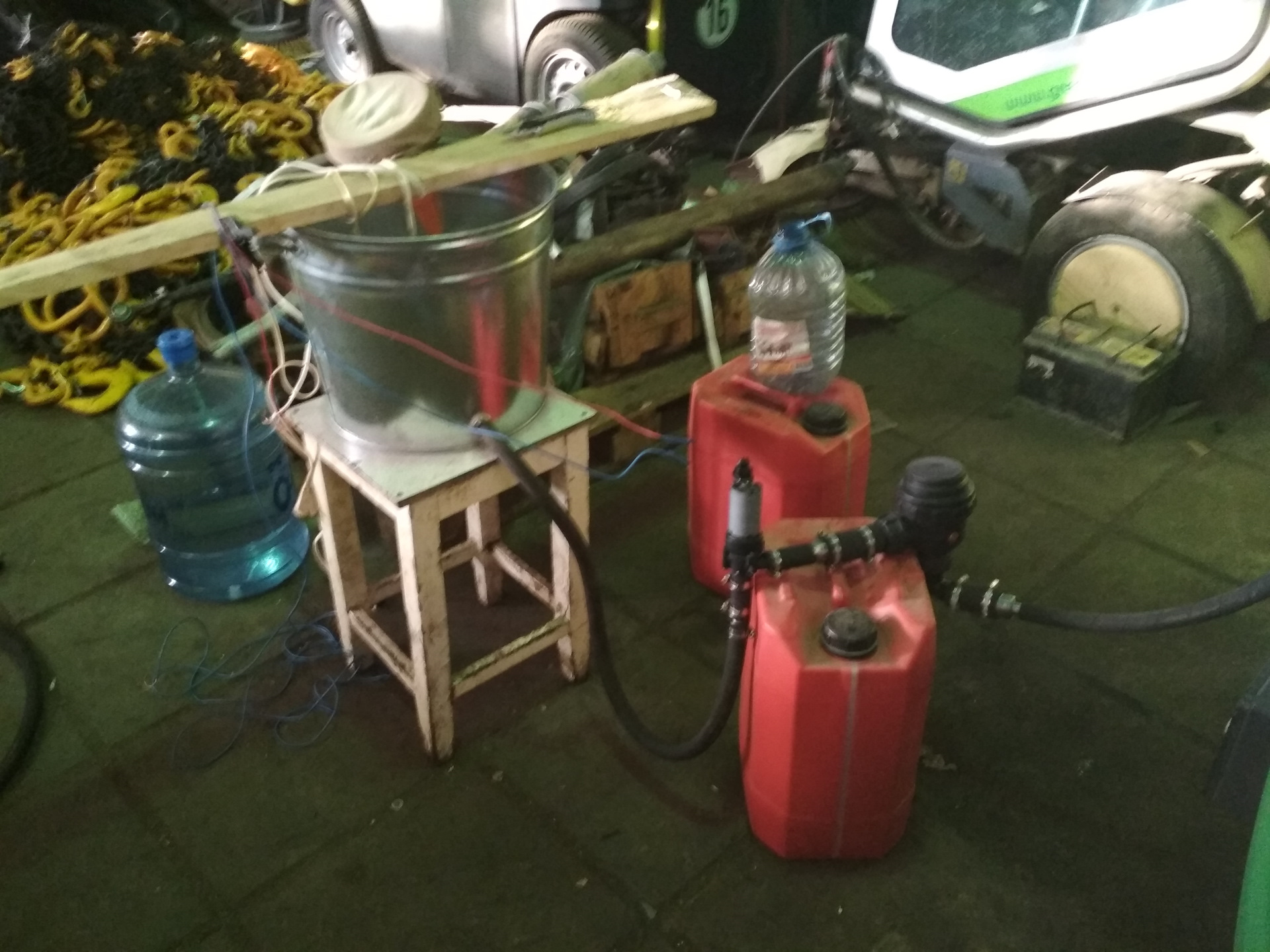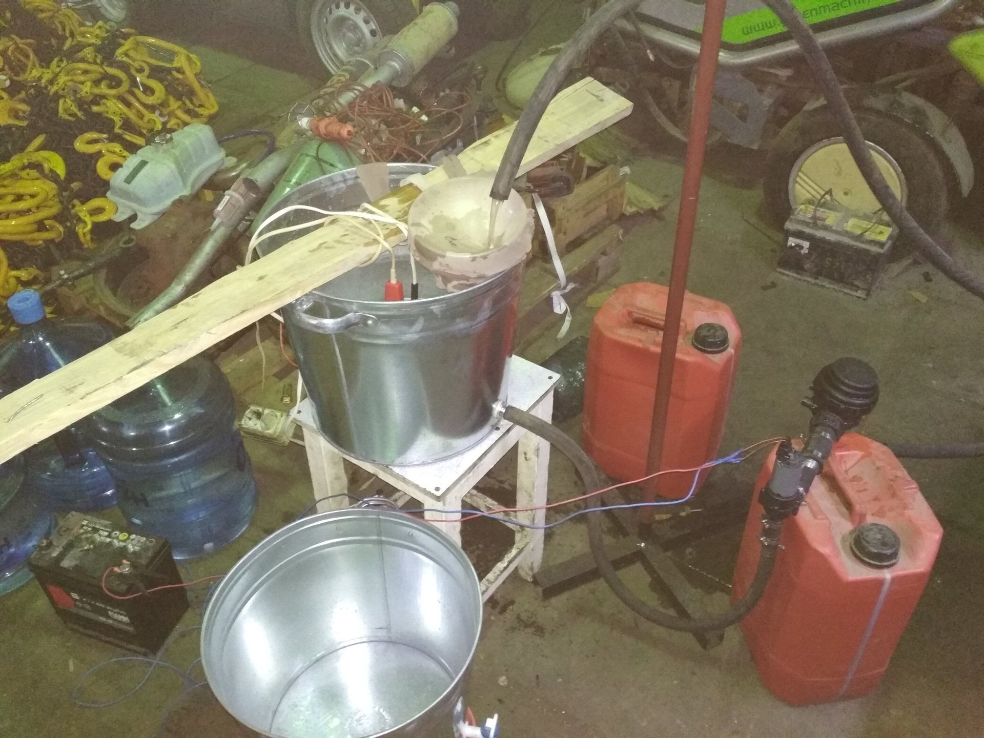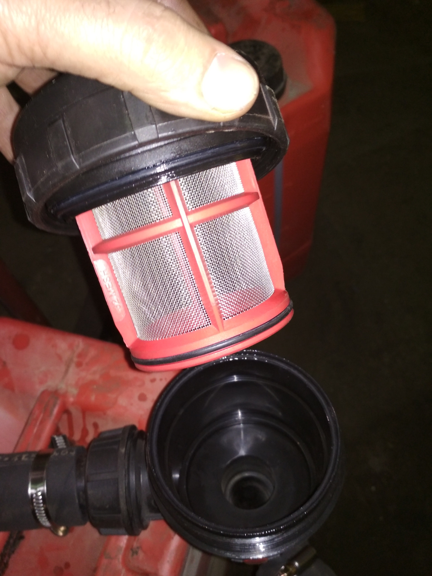 Был собран опять стенд для промывки, но в этот раз я вставил в него фильтр (32 микрона сетка), чтобы вымытую грязь не гнать опять в двигатель.