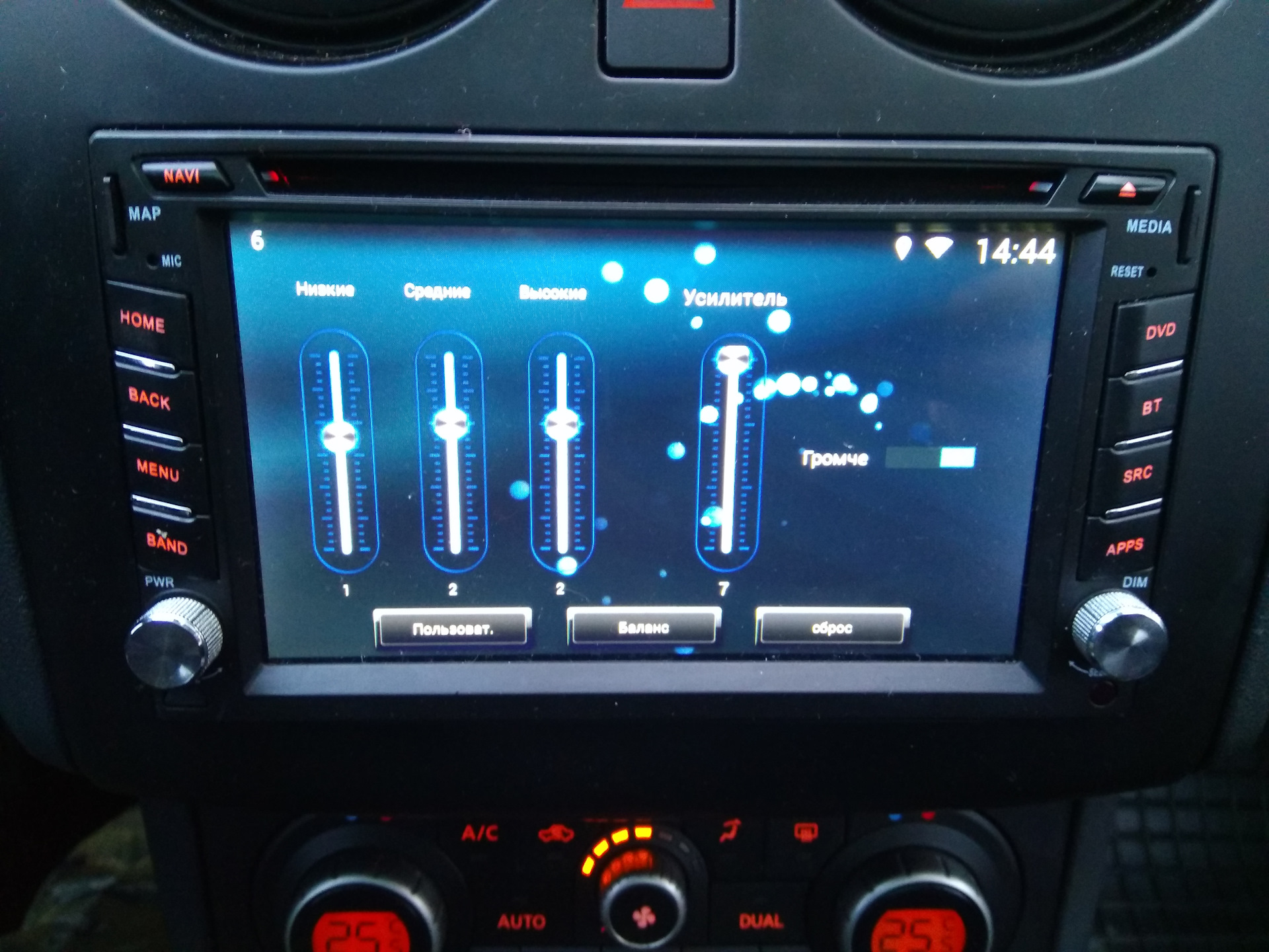 Что порадовало, так это то, что мощность можно регулировать в настройках эквалайзера меняя уровень выходного сигнала на саб (усилитель), там же можно грубо настроить усиление или ослабление НЧ, СЧ и ВЧ