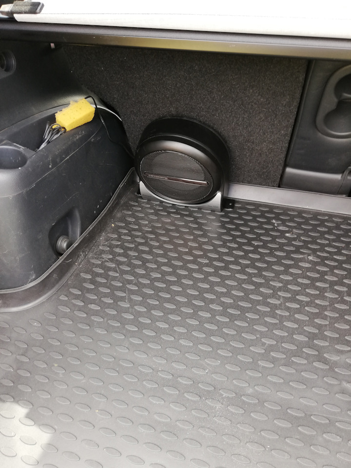 Не для кого не секрет что именно низкочастотный динамик, воспроизводящий только узкий спектр частот (обычно 20-200Гц) способен по настоящему улучшить общую звуковую картину и дать насыщенный бас. Но не всё так просто как мне хотелось, дело в том что сдерживающим фактором для меня было именно то что я не при каких условиях не хотел жертвовать местом в багажнике и возможностью его трансформации. Напомню что у меня вместо третьего ряда сделан органайзер в которой я периодический складываю разную мелочь. Подробнее ТУТ