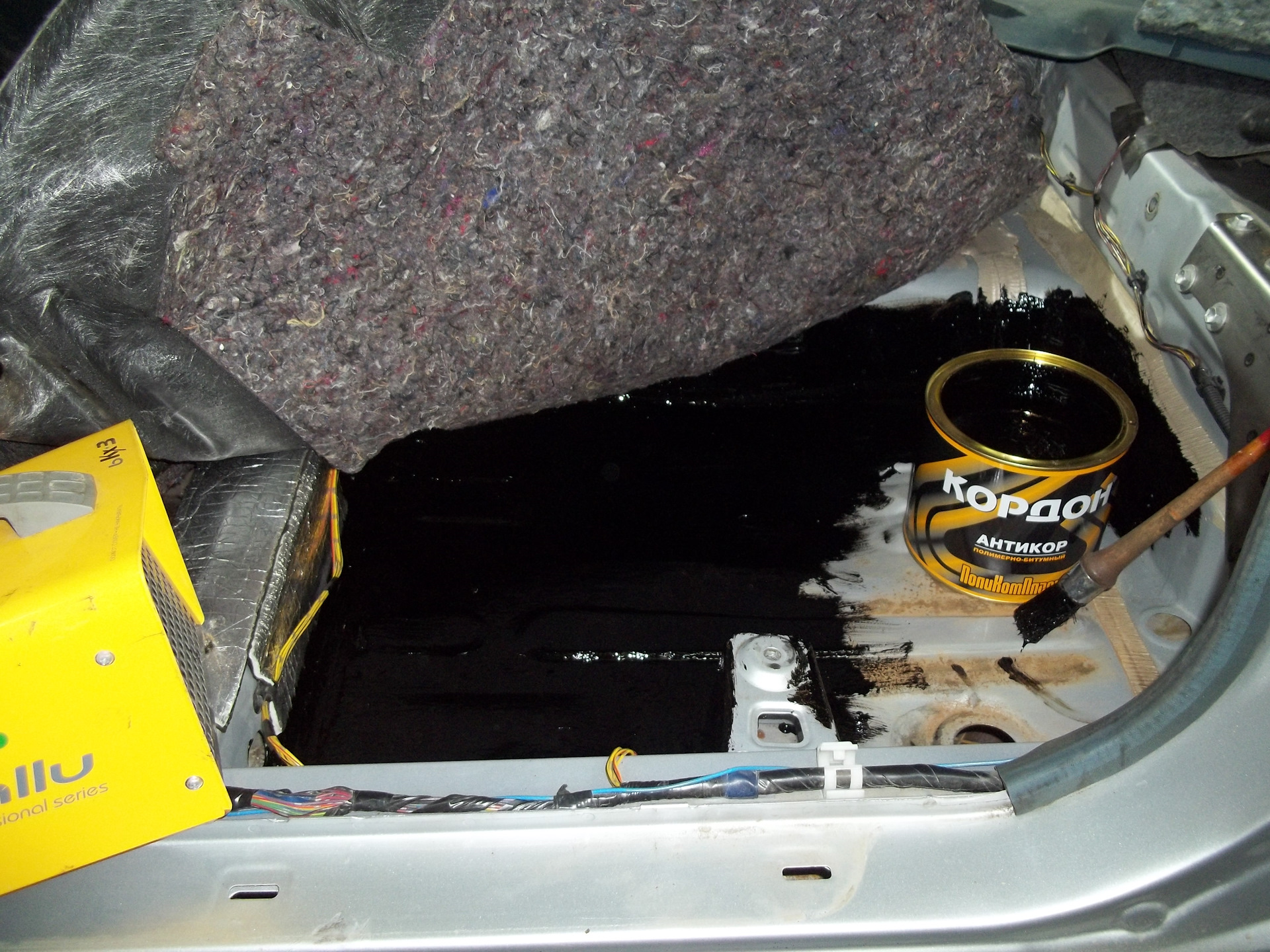 Заодно удалил ржавчину пола и промавилил и удалил ремни безопасности задних сидений: