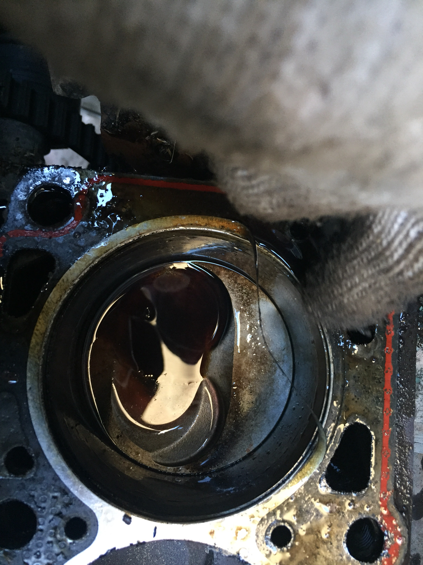 Это все таки не масло а антифриз, да поршень очищен, шлифовка для убедительности, так как пробило прокладку, может и свести головку, в принципе там прав мкрн, ничего критичного не было))