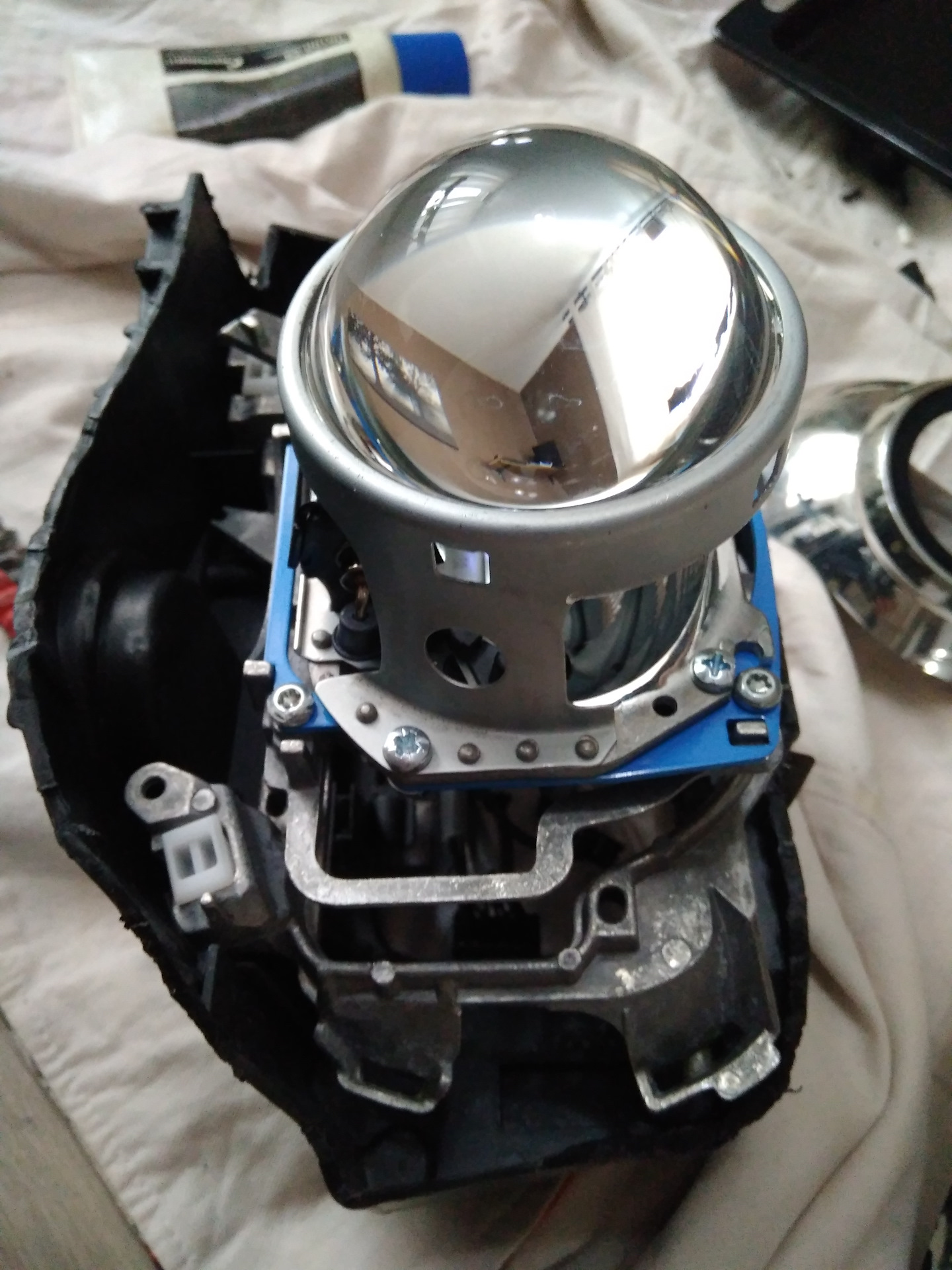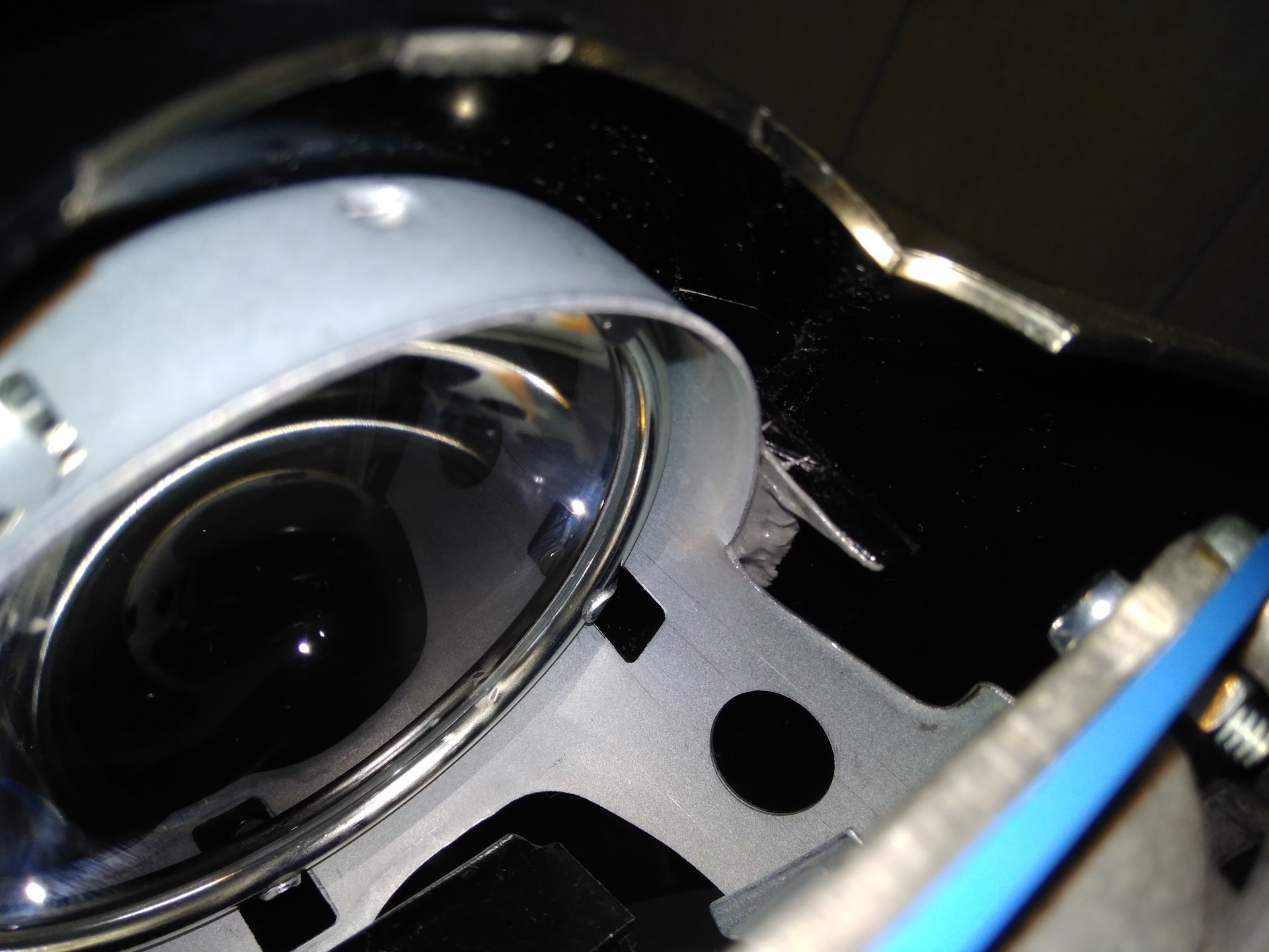Крепления внутренней бленды проектированы под посадочные места линзы Валео. С хеллой эти места различаются, пришлось немного фантазировать но я не нашел никакого другого надежного варианта, кроме как приклеить на поксипол.