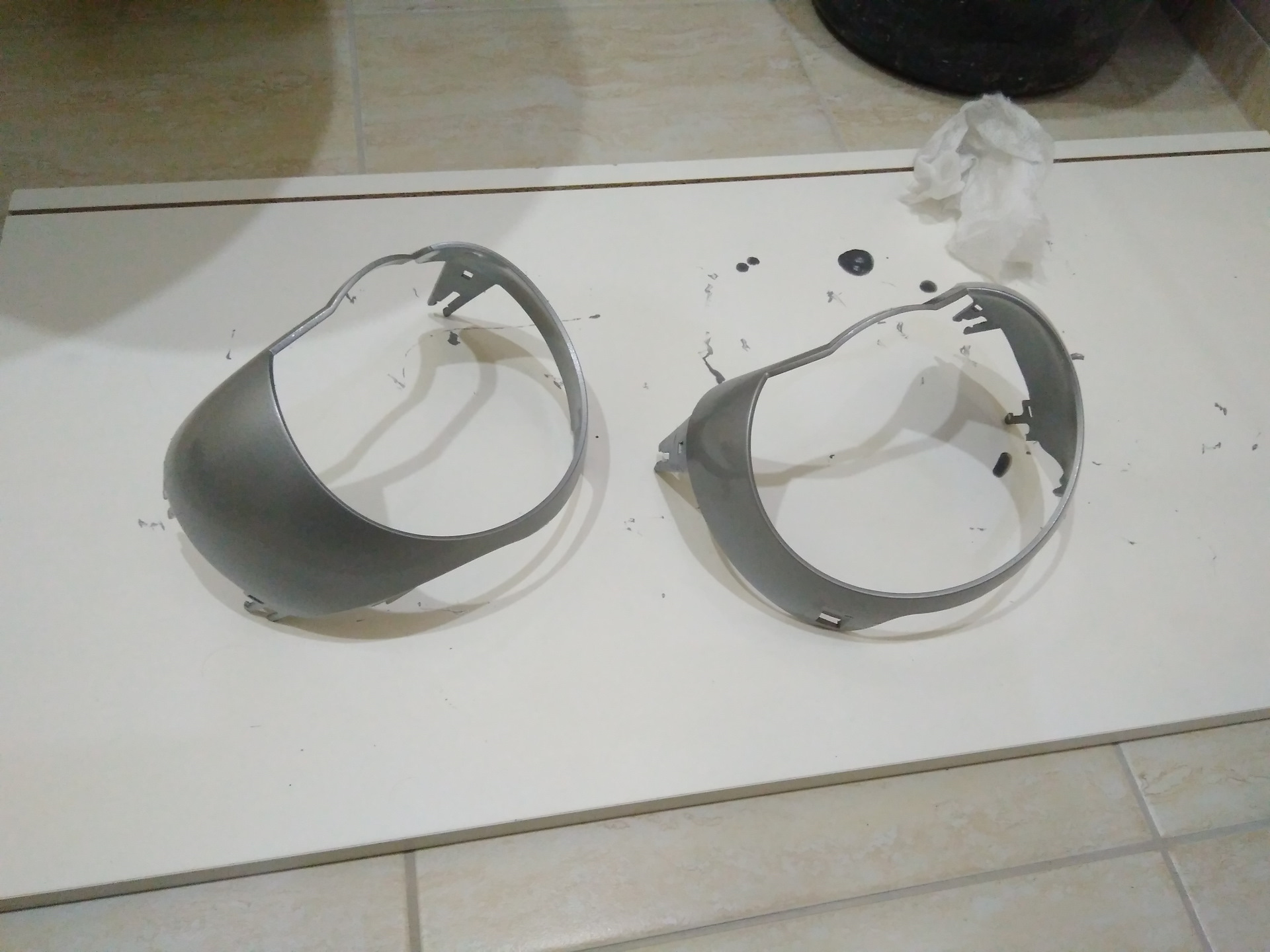 Когда прошлым летом я мыл внутренности фары с фейри, у меня очень сильно облез хром с внешней рамки бленды. Выглядело очень неаккуратно, постоянно мозолило мне глаз. Я решил покрасить их самостоятельно. Сразу скажу, что вышло у меня не очень и желаемого цвета я не получил. Возможно, это изза моей неопытности или красками из балончика вообще нереально получить настоящий цвет хром. Не знаю !)