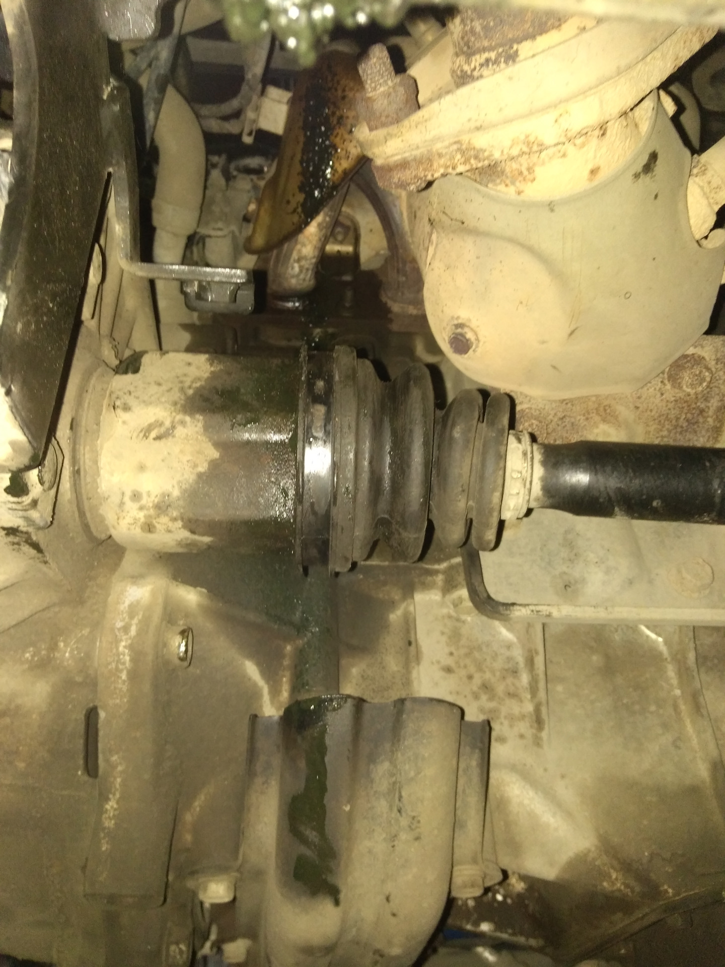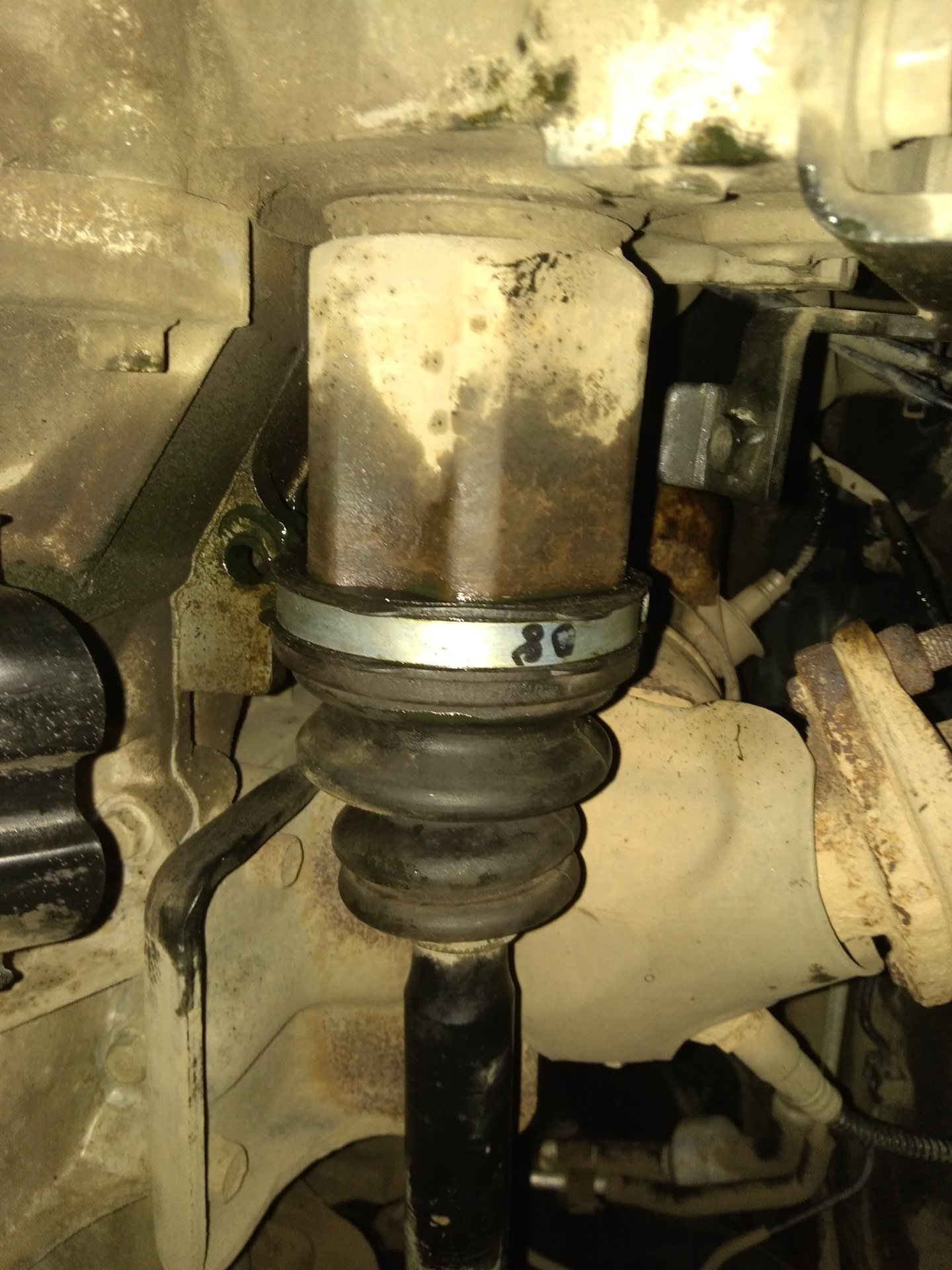 Выдавило достаточно много смазки через большой хомут, мелкий хомут на месте, пыльник целый.