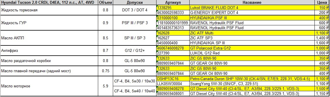 Сделал для себя краткую памятку по всем техжидкостям моего авто: наименование, допуски, заливной объем, артикулы, стоимость на текущий момент (EXIST с учетом моей скидки) а так же указал интервалы замены.