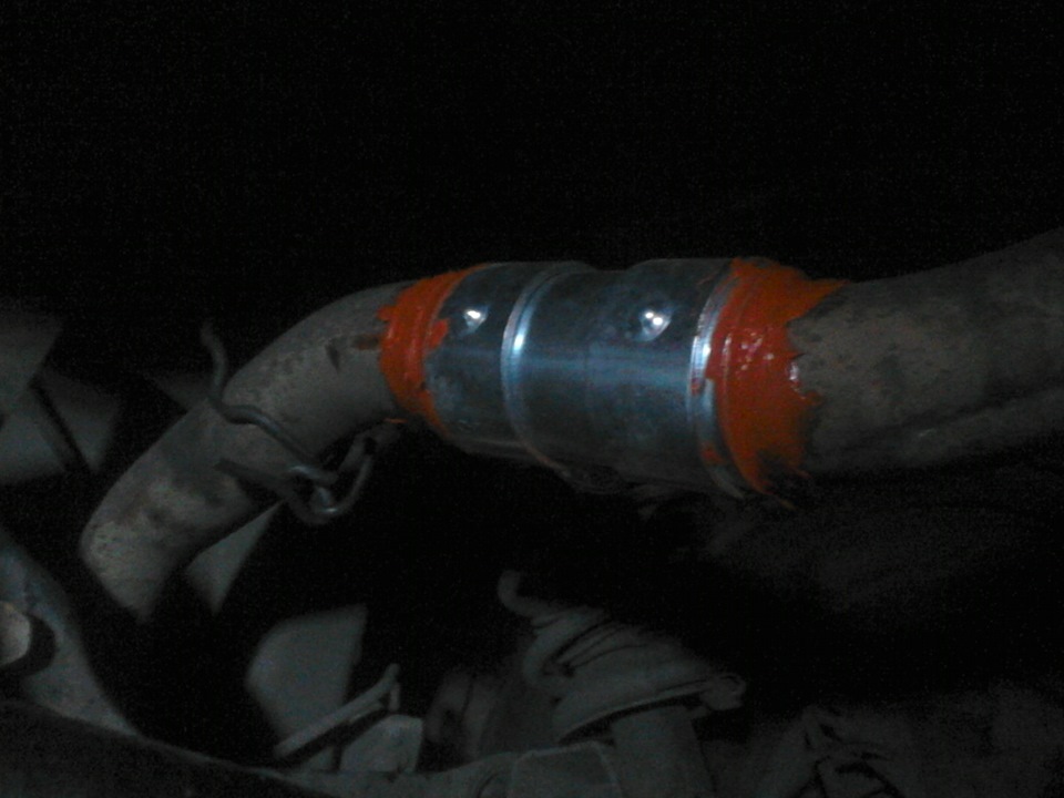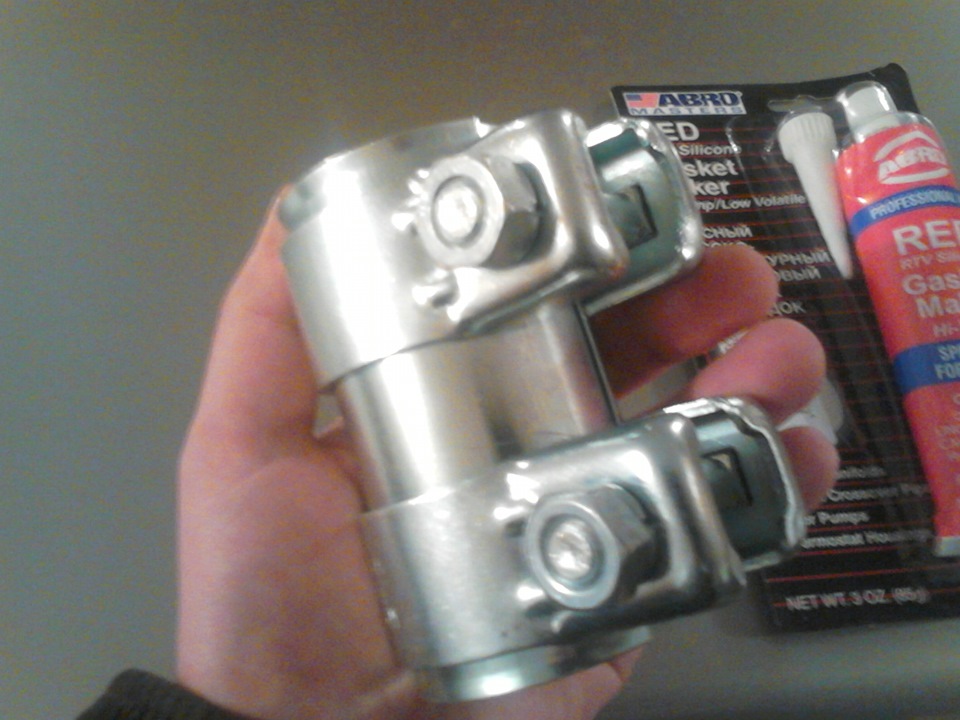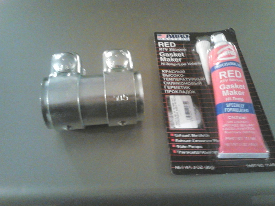 3. По скольку фланец на глушителе меня устал капитально, решил я от него избавиться по опыту товарища Goddfatherr. Для этих целей был приобретен обжимной хомут JP GROUP 1121400500 и красный высокотемпературный герметосик Abro (интересно, все их герметики воняют уксусом?).