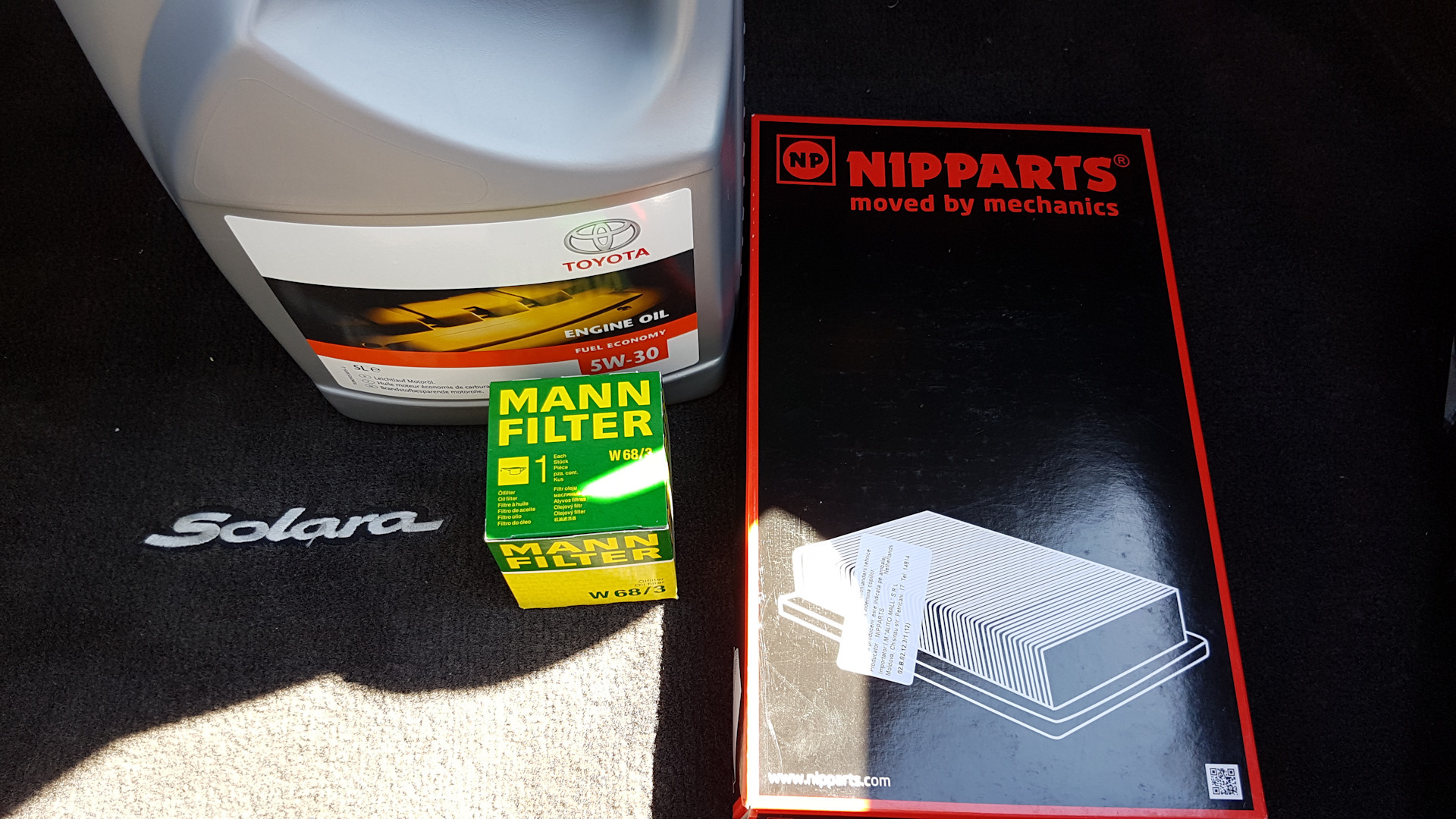 Купили мы Масло TOYOTA 5W-30 Оригинал Бельгийское и Фильтр масляный по MAN W 68/3 (который не подощел), воздушный (тоже промах) и салонный (который вообще не где ставить) )))))