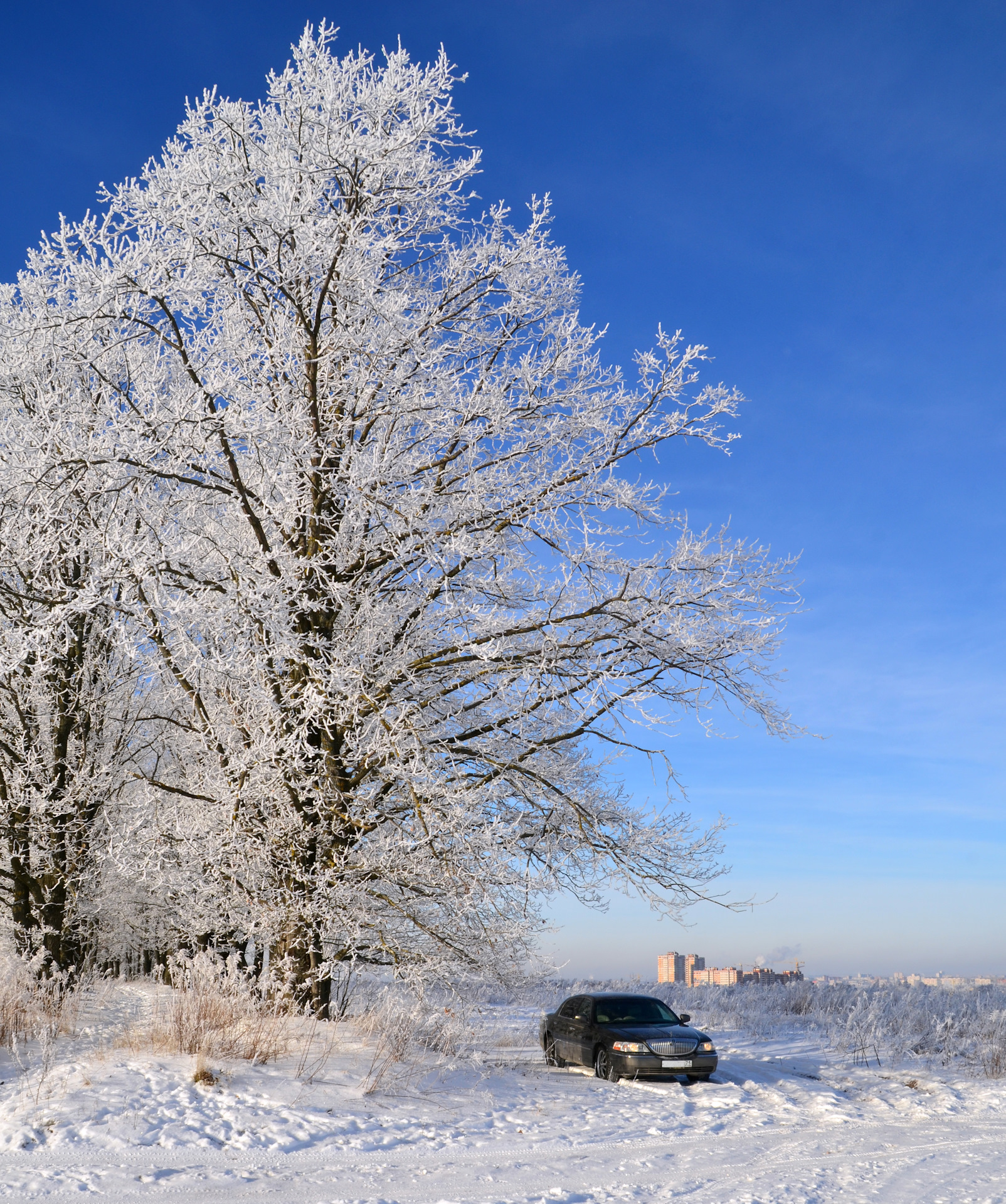 Наконец то пришла зима, а вместе с ней и морозы((( У нас с 23 по 26 января существенно похолодало, ночью было до -17 градусов, а в ночь с 24 на 25 был туман!.. откуда он взялся — не понятно, но к утру все деревья покрылись очень красивым инеем. К обеду выглянуло солнце и весь иней заиграл переливами. Я решил воспользоваться моментом и прокатиться поснимать природу, заодно и Линкольн прогуляется по сухой морозной погоде, что-бы не застаивался)))) На всякий случай положил в багажник снеговую лопату, не хотелось в случае чего откапывать машину маленькой саперной лопаткой, которая всегда лежит в багажнике. Все путешествие заняло минут 45-50, благо ехать далеко не пришлось… И вот что из этой поездки вышло: