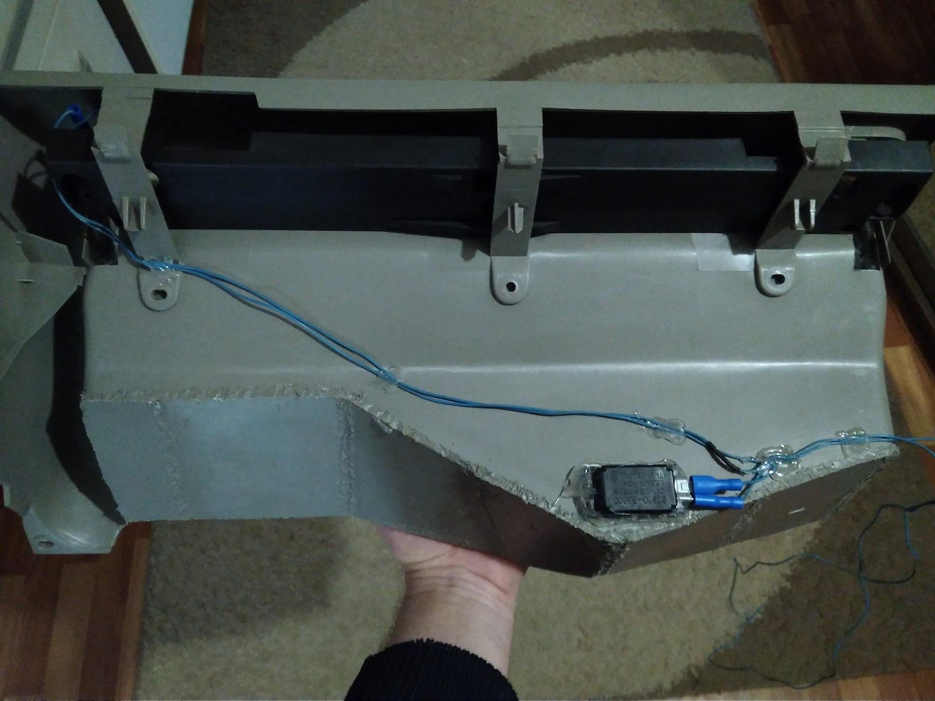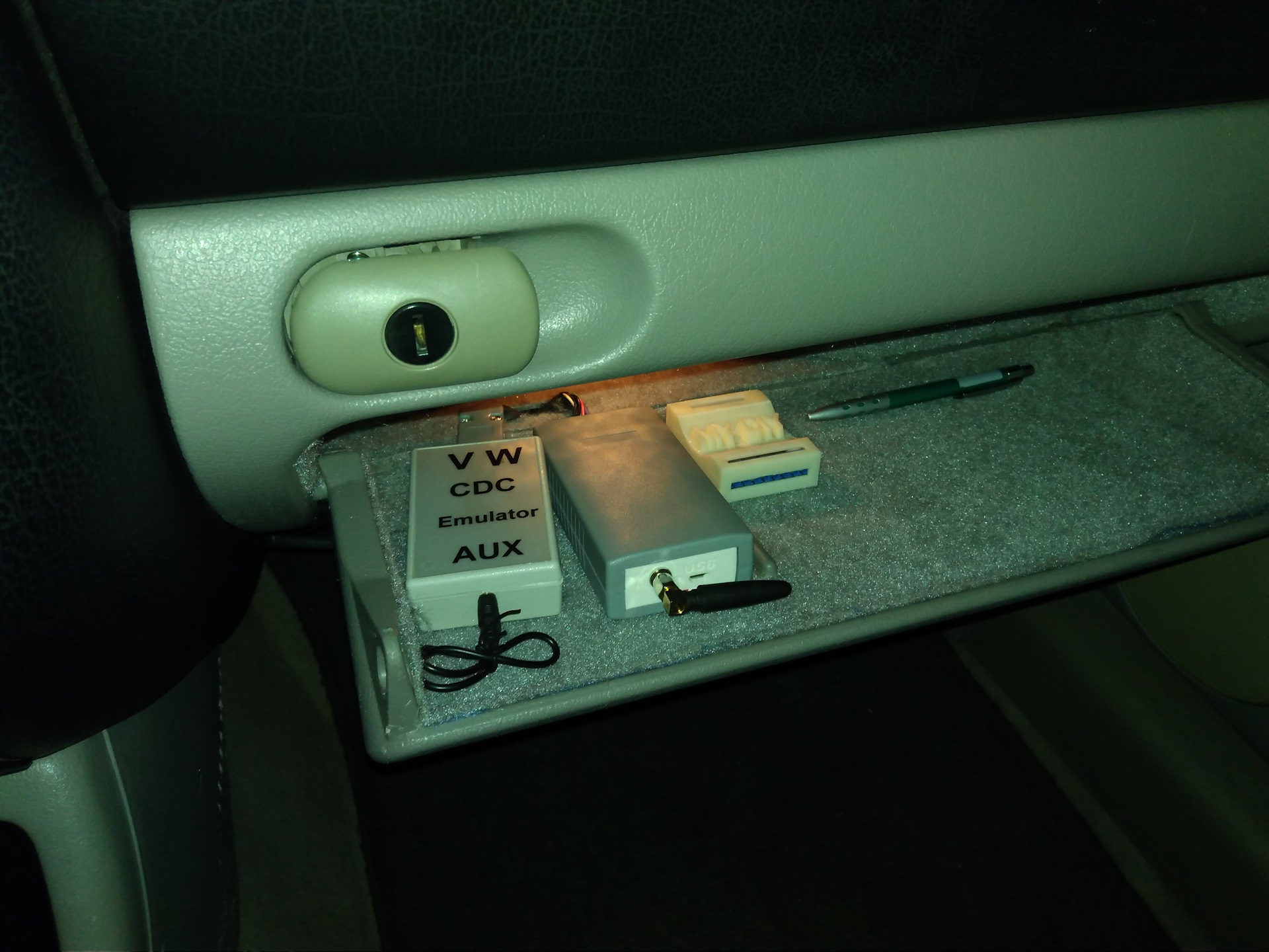 Прикинул где это все в бардачке разместить, чтобы ничему не мешало, и бардачок вставал на свое место без проблем. В итоге получилось вот так: