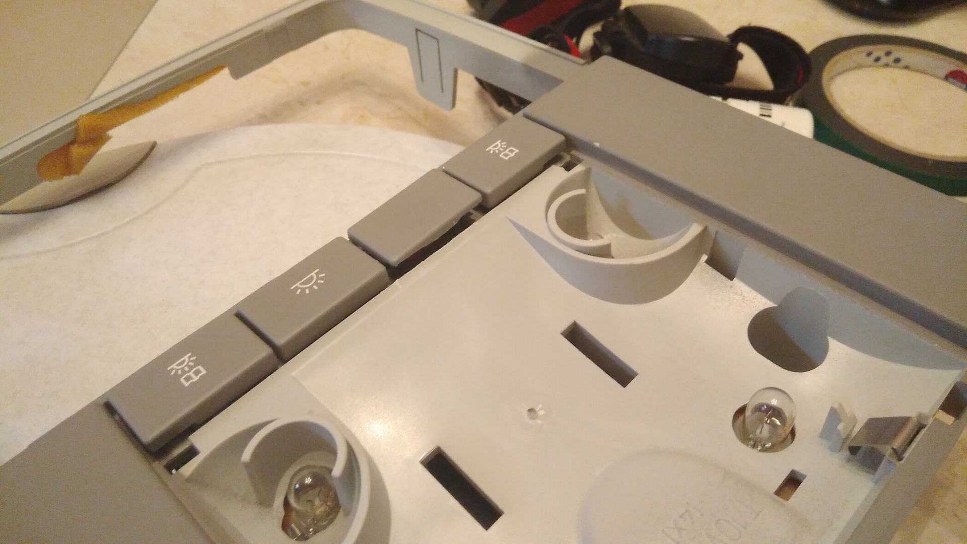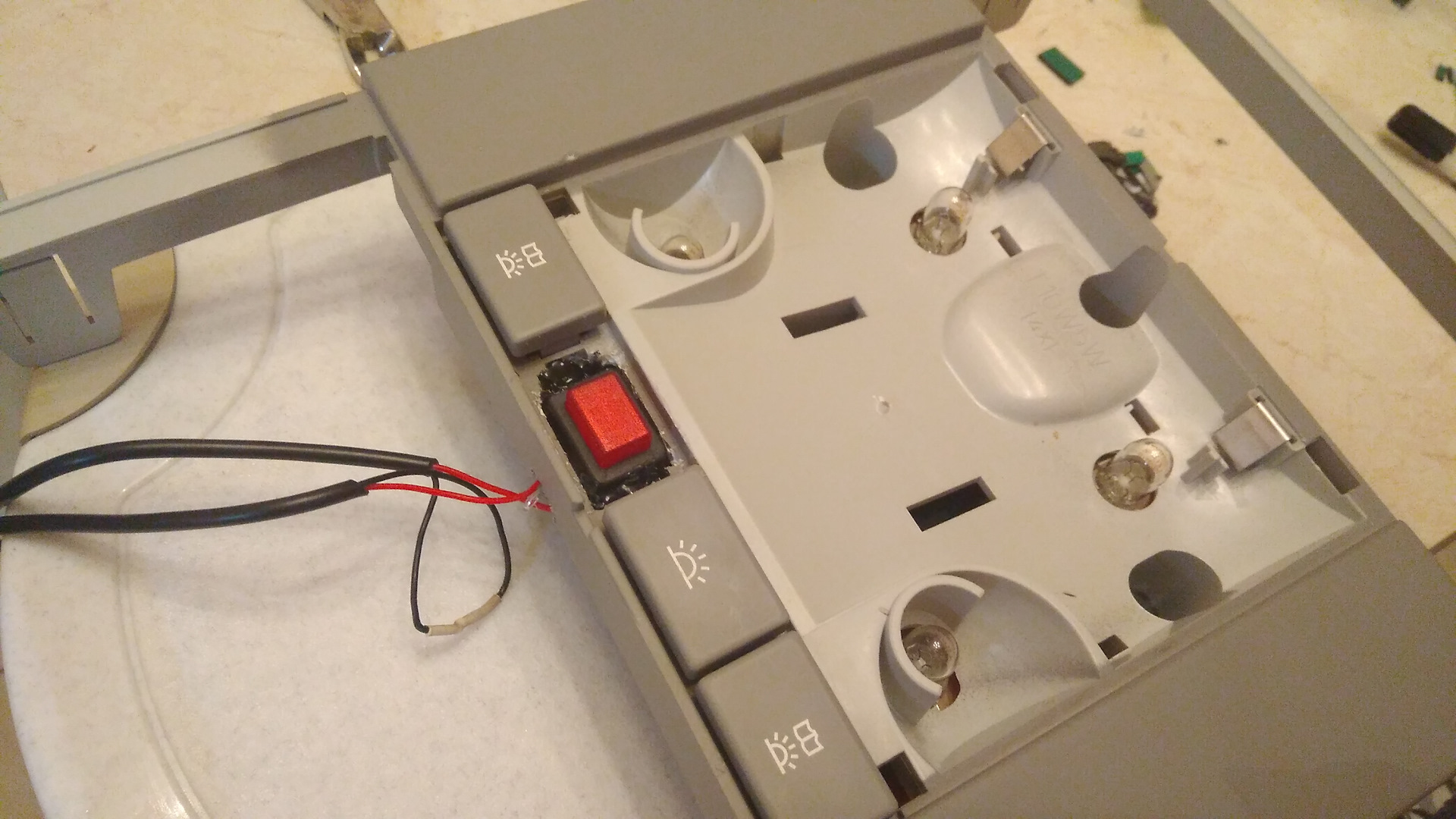 Уже в машине, соединив разъемы, при проверке включения света оказалось, что заела кнопка водительской лампочки и не нажимается.