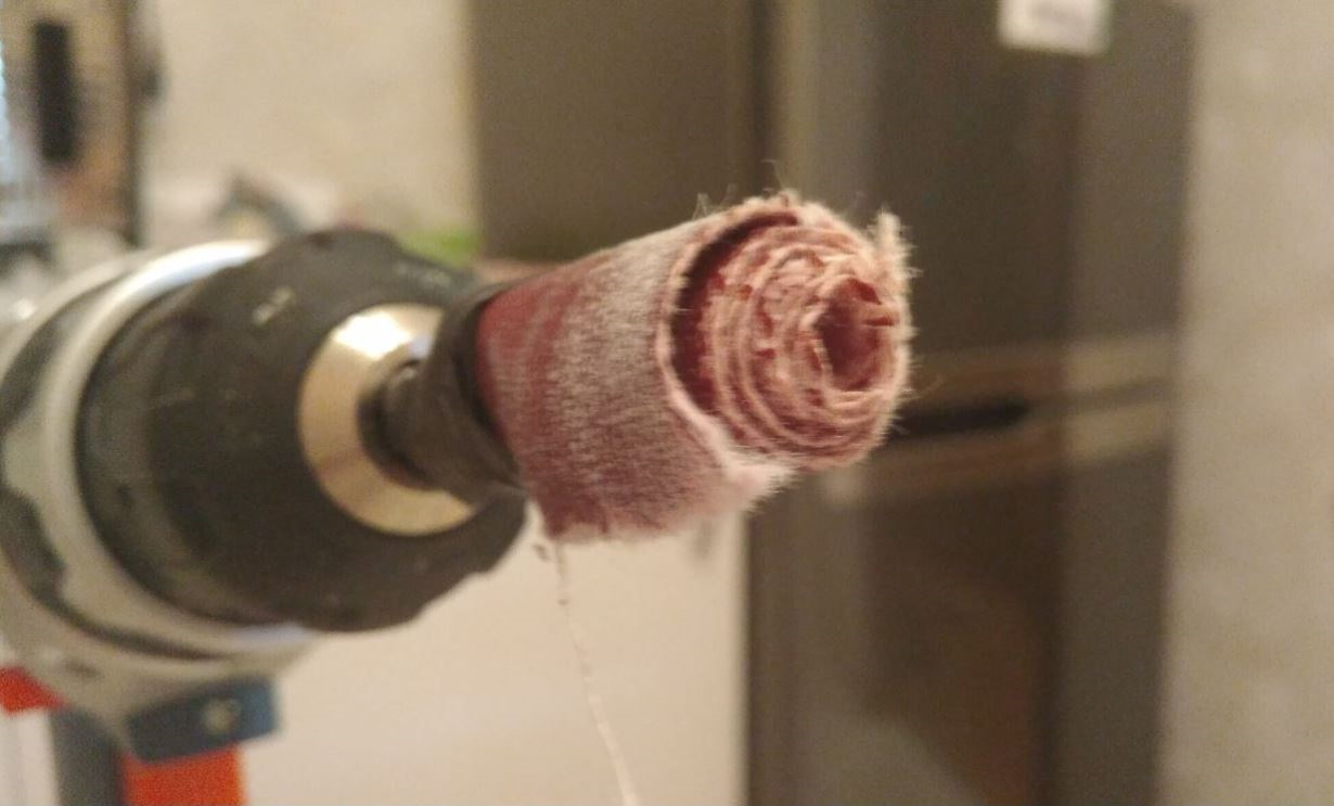 Но вечер только начинает быть томным. Все надфили оказываются в гараже, а хочется закончить уже сегодня. Приходится вот таким вот импровизированным способом стачиваем пластик