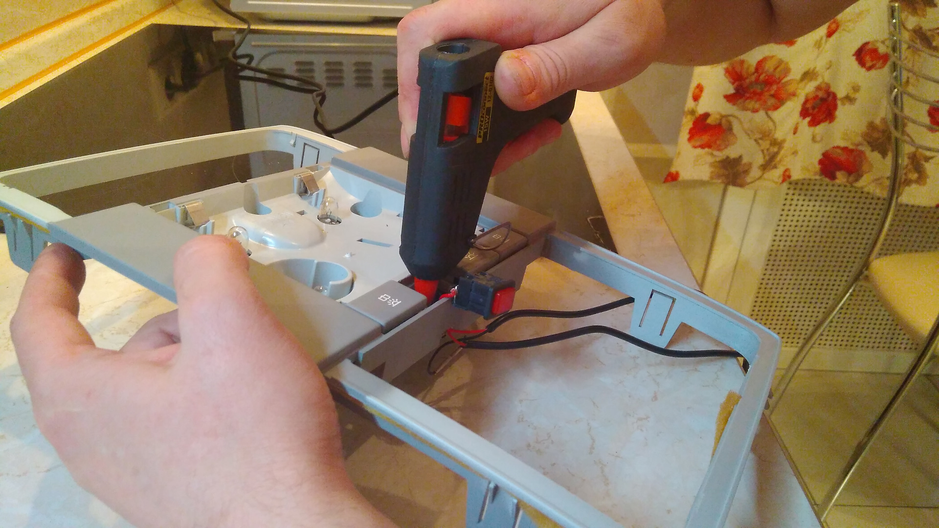 Что это я сейчас увидел? Женщина с ногтями, которые стоят как полрегистратора, перепаивает кнопки ))
