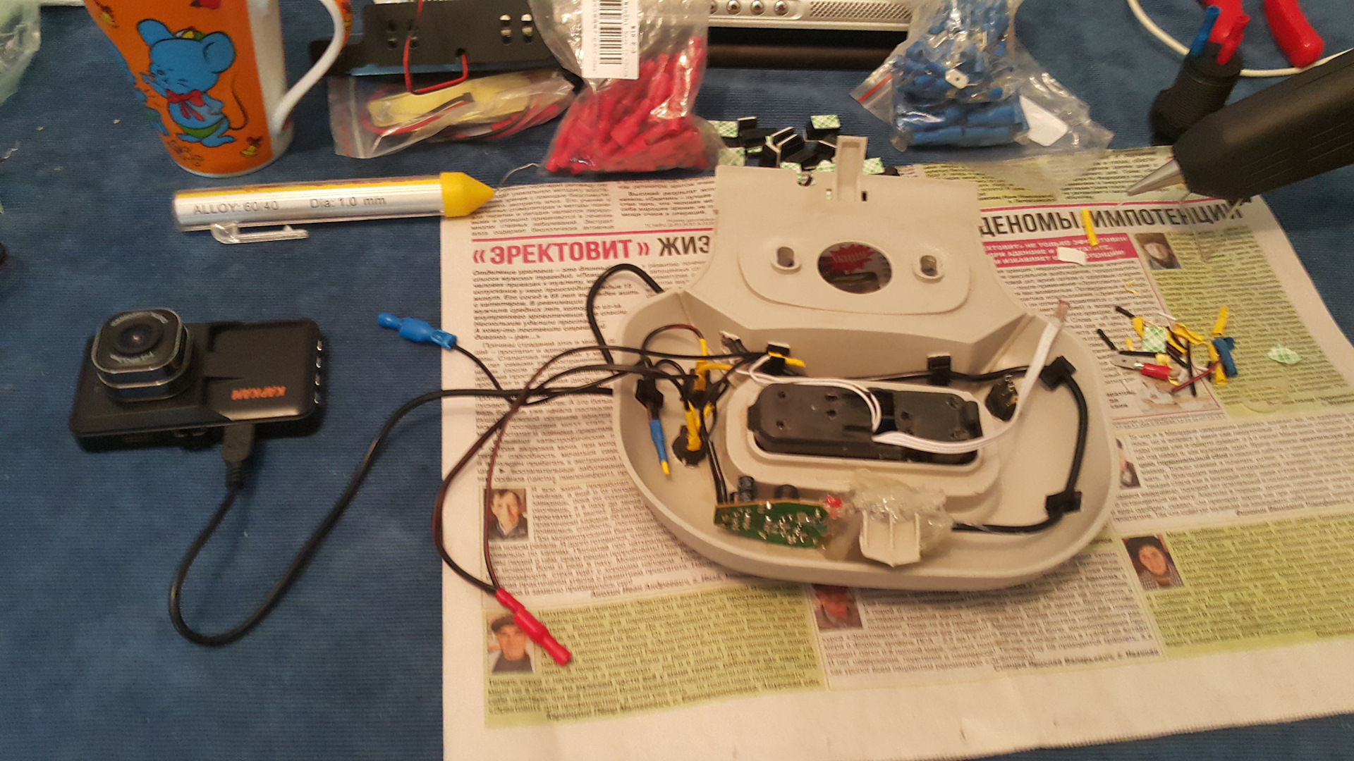 И регистратор мирно лежал около двух лет в шкафу (т.к. на иное подключение я не соглашалась, хотя меня и пытались вернуть в сторону логики, Серёжка периодически предлагал другие возможные и более легкие варианты, но нет, хотелось только так!). Забавная ситуация, не правда ли?..)))