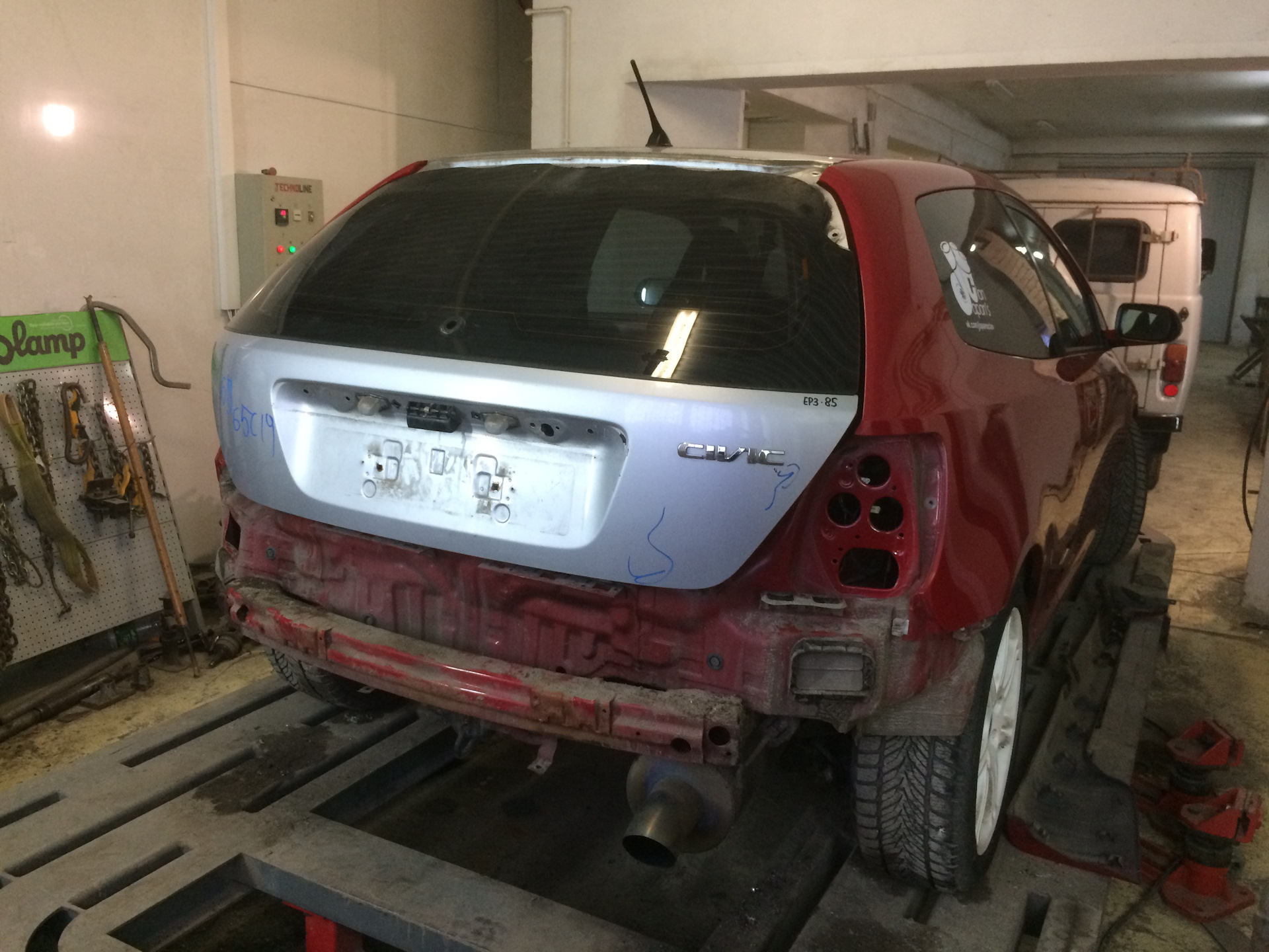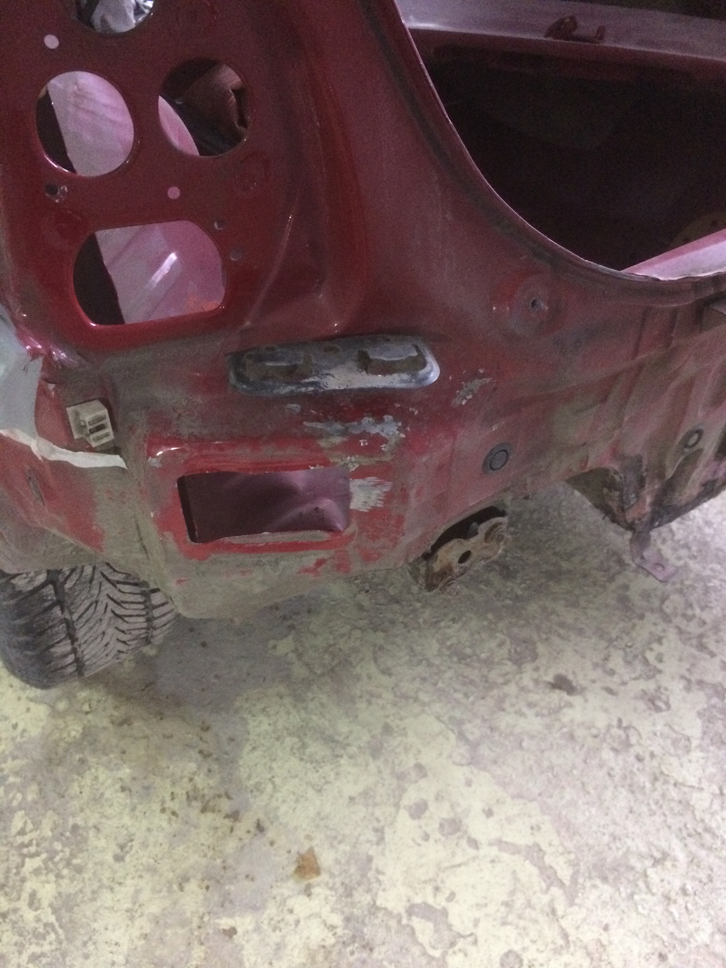 Первым делом надо было устранить небольшие огрехи кузова, а именно-складку в багажнике, замятость пассажирского порога.