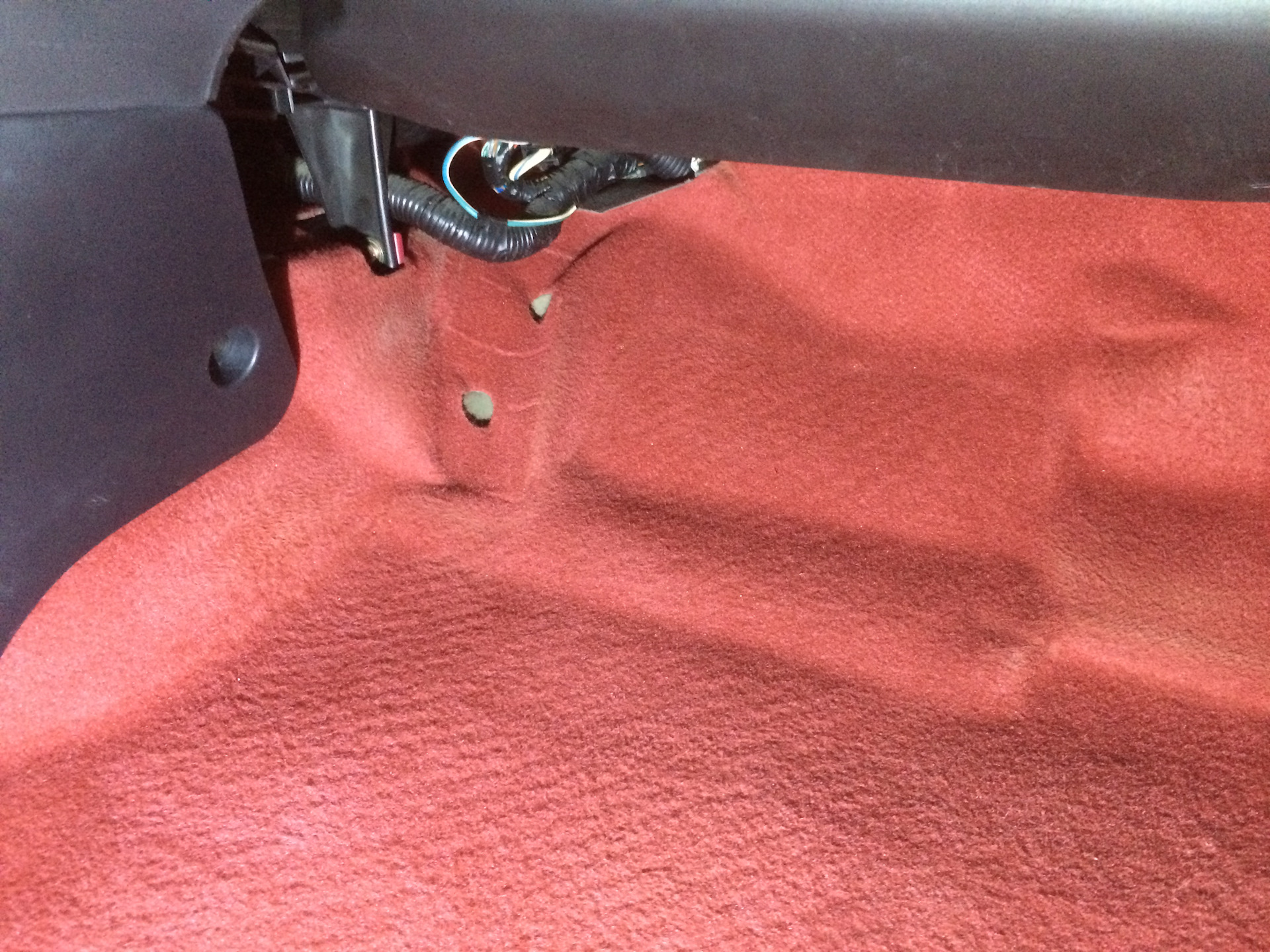 Как то вот так. Упор под ногу не стал ставить. Справа у пассажира у нас остаются отверстия-под крючок открывания лючка бензобака, и отверстия под упор ноги. Отверстие под крючок лючка у нас перекроет коврик (я кстати туда заложил кусочки которые пришлось отрезать при укладке паласа), отверстия под упор ноги так и остаются, но они не прям так сильно бросаются в глаза.