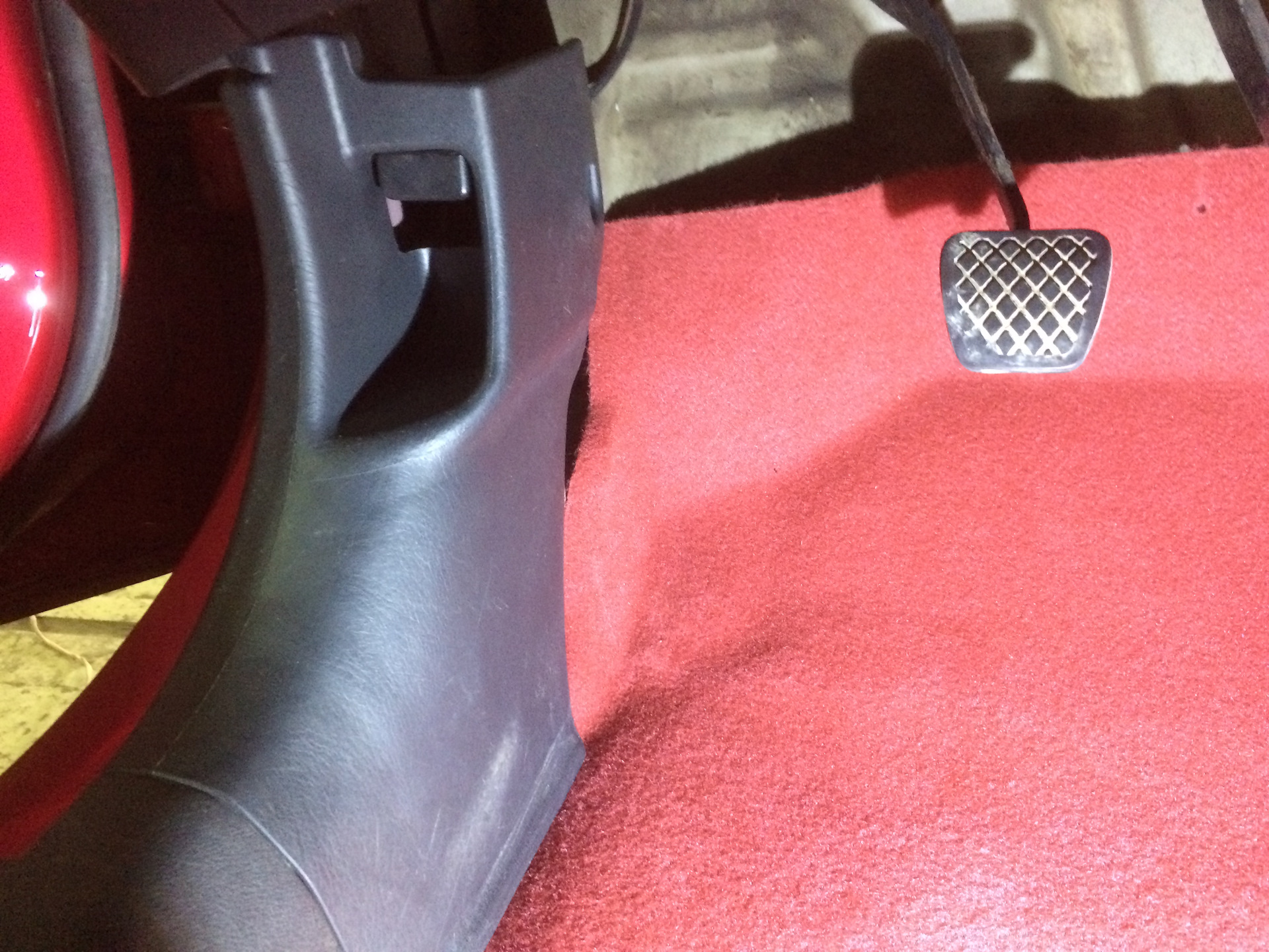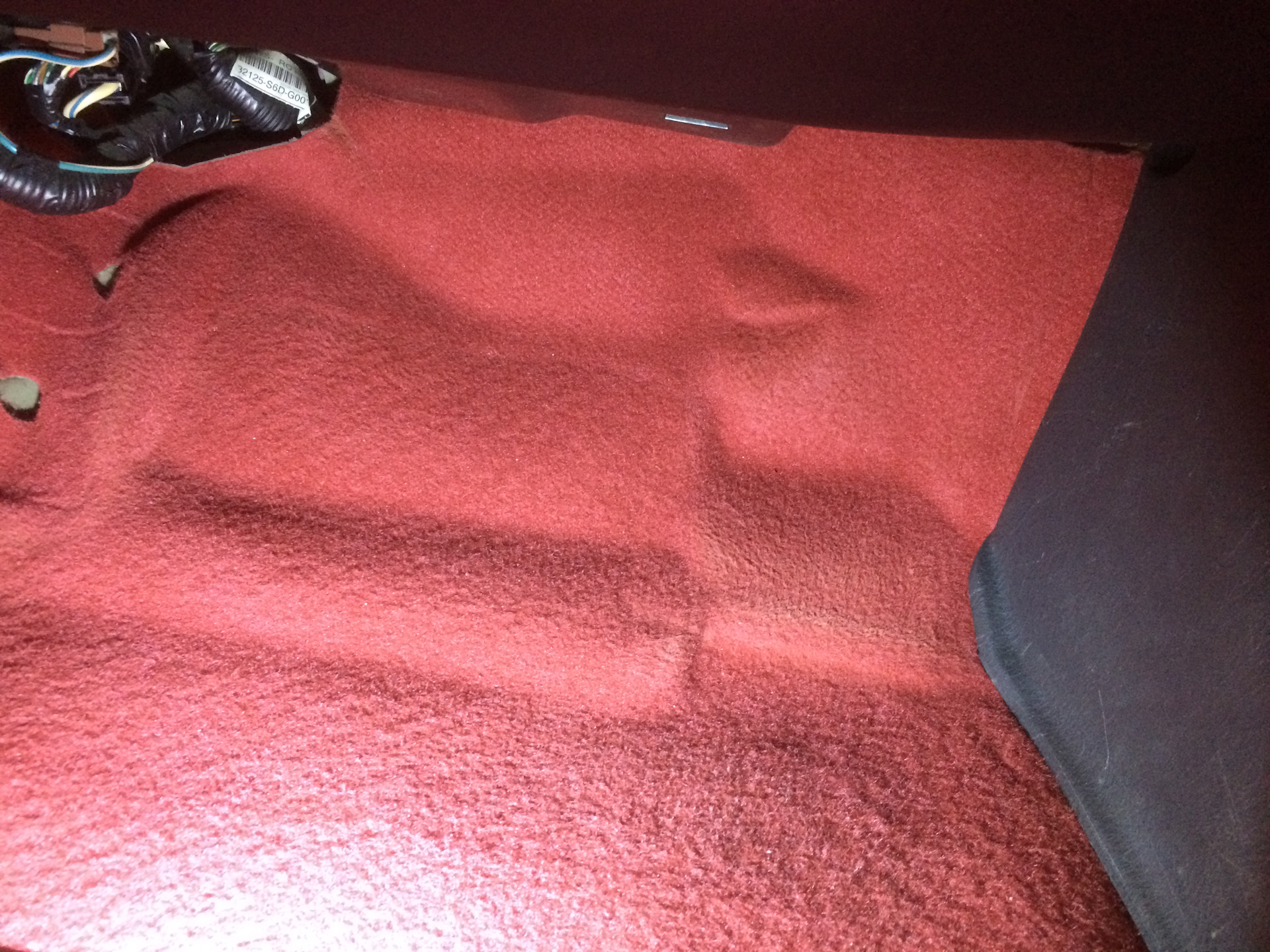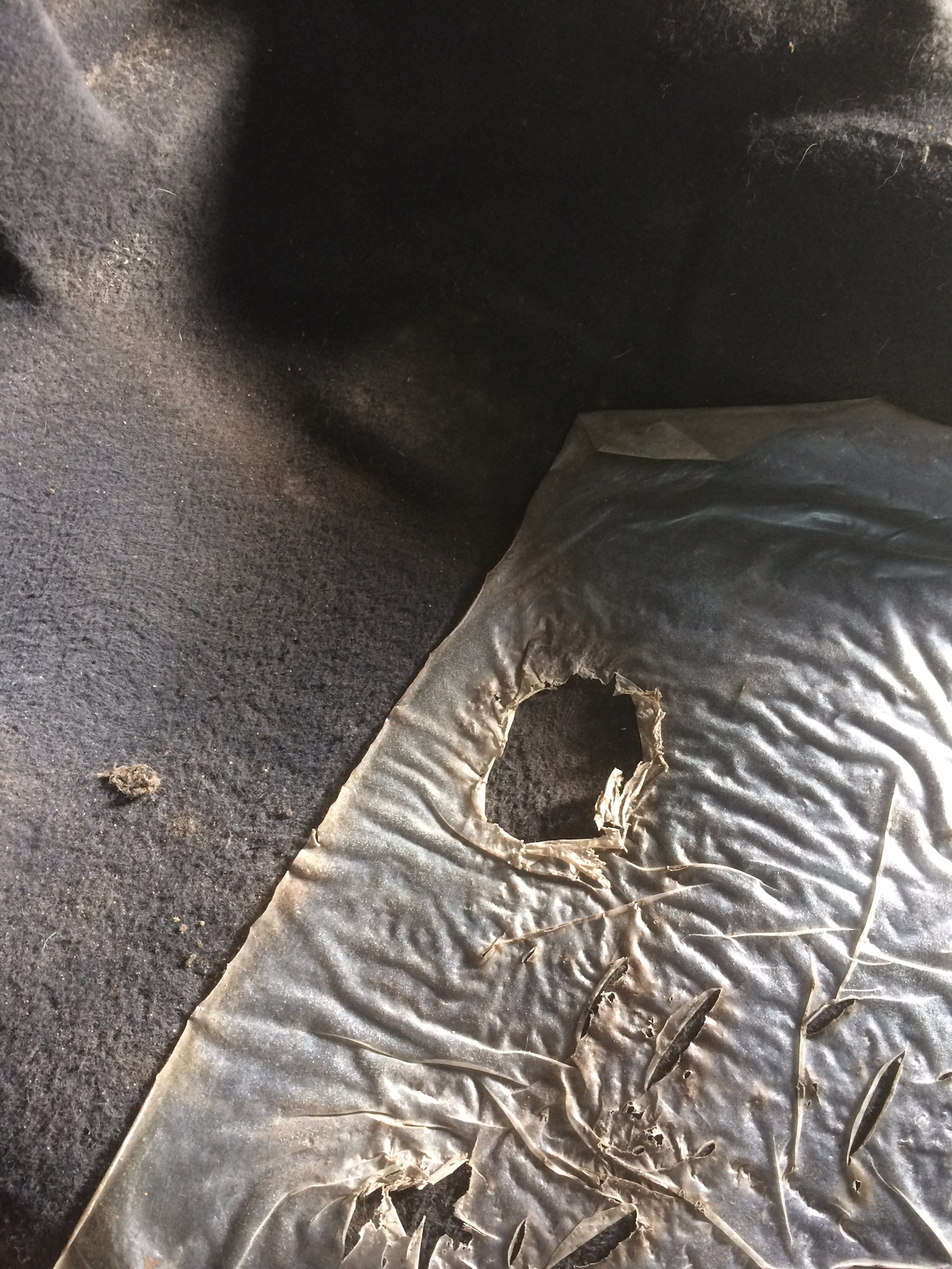 Так вот ещё одна причина замены паласа, это протёртость под педалью газа. Думал что она сквозная, на деле оказалось что это сверху ворс подтёрся и примялся, в принципе, думаю после хорошей чистки, он будет выглядеть как новый