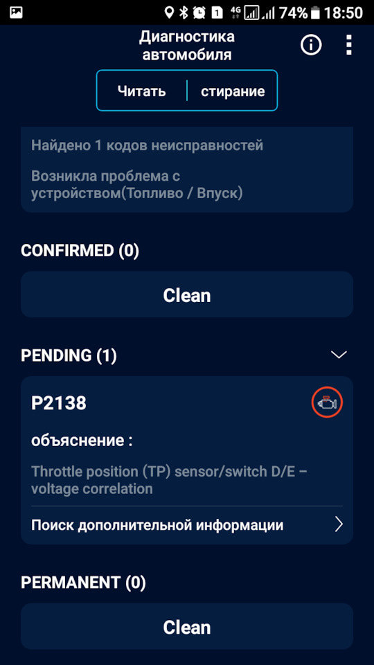 Вкратце: в течении одно дня (после трёхдневной стоянки) стала пропадать тяга при нажатии на "газ". Сначала помогало переключение реверс <--> драйв, потом помогало выкл\вкл, потом всё перестало помогать и загорелся джеки-чан с ошибкой P2138 . Минут 20 покоя — и можно опять ехать, но не долго.